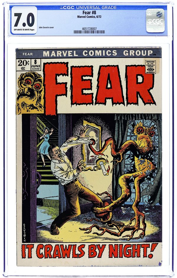 All reprints: Cover art by John Severin. "It Crawls By Night!", pencils by Jack Kirby, inks by George Klein; A farmer develops a new kind of plant that runs wild and is only stopped by the radiation of a strange meteor. "Never Trust a Martian!", art by Don Heck; Communist spies plan to fake a Martian invasion, but they are abducted and killed by the real Martians, afraid that their cover will be blown. "I Can't Escape from the Creeping Things!", art by Steve Ditko; A crabby old man wants to cut down a tree on his new property. "The Face!", art by Steve Ditko; A thief steals a cursed ruby and can't escape the curse. 36 pgs., full color. Cover price $0.20. Grade: CGC 7.0 explanation of grade Condition: Used (collectible)
