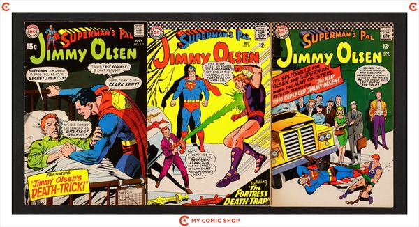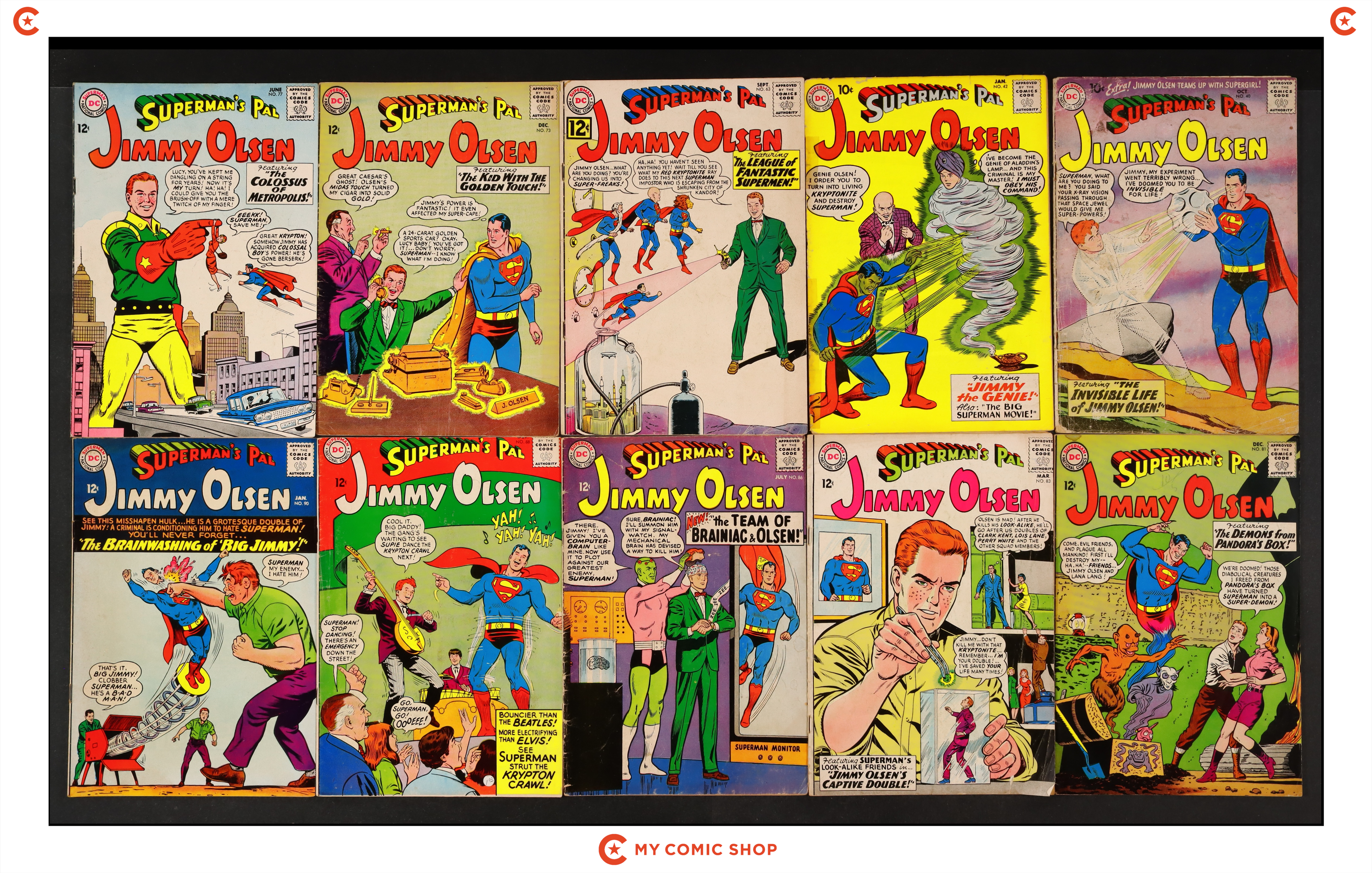 Issues 40, 42, 63, 73, 77, 81, 83, 86, 88, 90, 94, 97, and 121 of Superman's Pal Jimmy Olsen (1954). Most will grade in the VG to GD range.