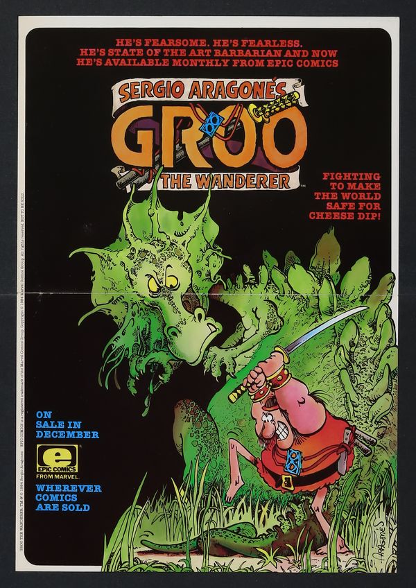 Groo the Wanderer (1985 Marvel) Promotional PosterPublished by Marvel/Epic.- High quality print on poster stock. Poster is folded. as originally issued. 11" X 16".