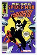 Newsstand Edition. "Blind Justice!" Part 2 of 2. Guest-starring Spider-Man, the Black Widow, and Daredevil. Plot by Tom DeFalco. Script by Jim Owsley. Art by Greg LaRocque (breakdowns) and Mike Esposito (finishes). Cover by Art Adams and Mike Mignola. Spider-Man is missing! What has happened to the spectacular one? Regardless, Daredevil and the Black Widow must keep working on the pawnbroker murder case in order to prevent an innocent man from going up the river! The Man Without Fear and Natasha just about have the case solved, when the web-slinger suddenly reappears...in a brand new costume! They'll be glad to have Spidey's help to finish this caper...or will they? Daredevil's deal with the Kingpin may not go over too well with your friendly neighborhood Spider-Man! Cameo appearances by the Kingpin, the Arranger, and Dr. Curt Connors. (Notes: Spider-Man's new costume debuted this month in Amazing Spider-Man 252, Spectacular Spider-Man 90, and this issue. The letters page includes a letter from Marvel creator Stan Lee.) 36 pages. Cover price $0.60. Grade: VF- 7.5 explanation of grade Condition: Used (collectible)