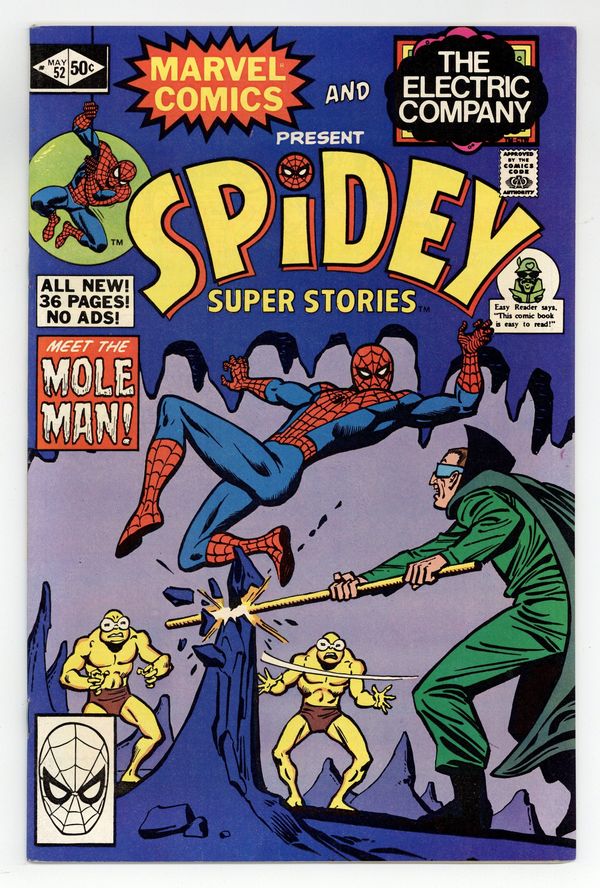 Starts Jan 19 "Mystery of the Mole Machine!" Story by Jim Salicrup and Steve Grant. Art by Winslow Mortimer, Ricardo Villamonte, and Mike Esposito. Spidey battles the Mole Man. Includes the 1-page features "The Blizzard Storms In," "Who is the Human Torch?,"and "Wit of the Webslinger." Includes the back-up tale "The Real Spidey!" Guest-starring the cast of the Electric Company. Plus, Spidey gets some help from the Human Torch against the Blizzard in "The Big Freeze!" Featuring the clip and collect Spidey Stamp: #36 Blizzard. Cover price $0.50. Grade: VF 8.0 explanation of grade Condition: Used (collectible)