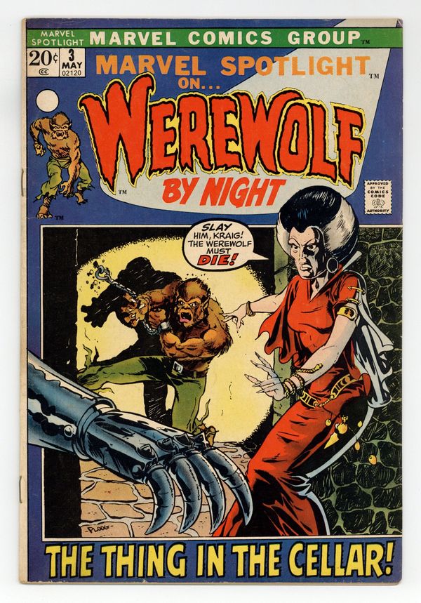 Starts Jan 19 First 20-cent cover price. Cover art by Mike Ploog. Werewolf By Night!, script by Gerry Conway, art by Mike Ploog; Andrea Timly captures Jack Russell and tries to get the location of the Darkhold from him. 36 pages, full color. Cover price $0.20. Grade: VG/FN 5.0 explanation of grade Condition: Used (collectible)