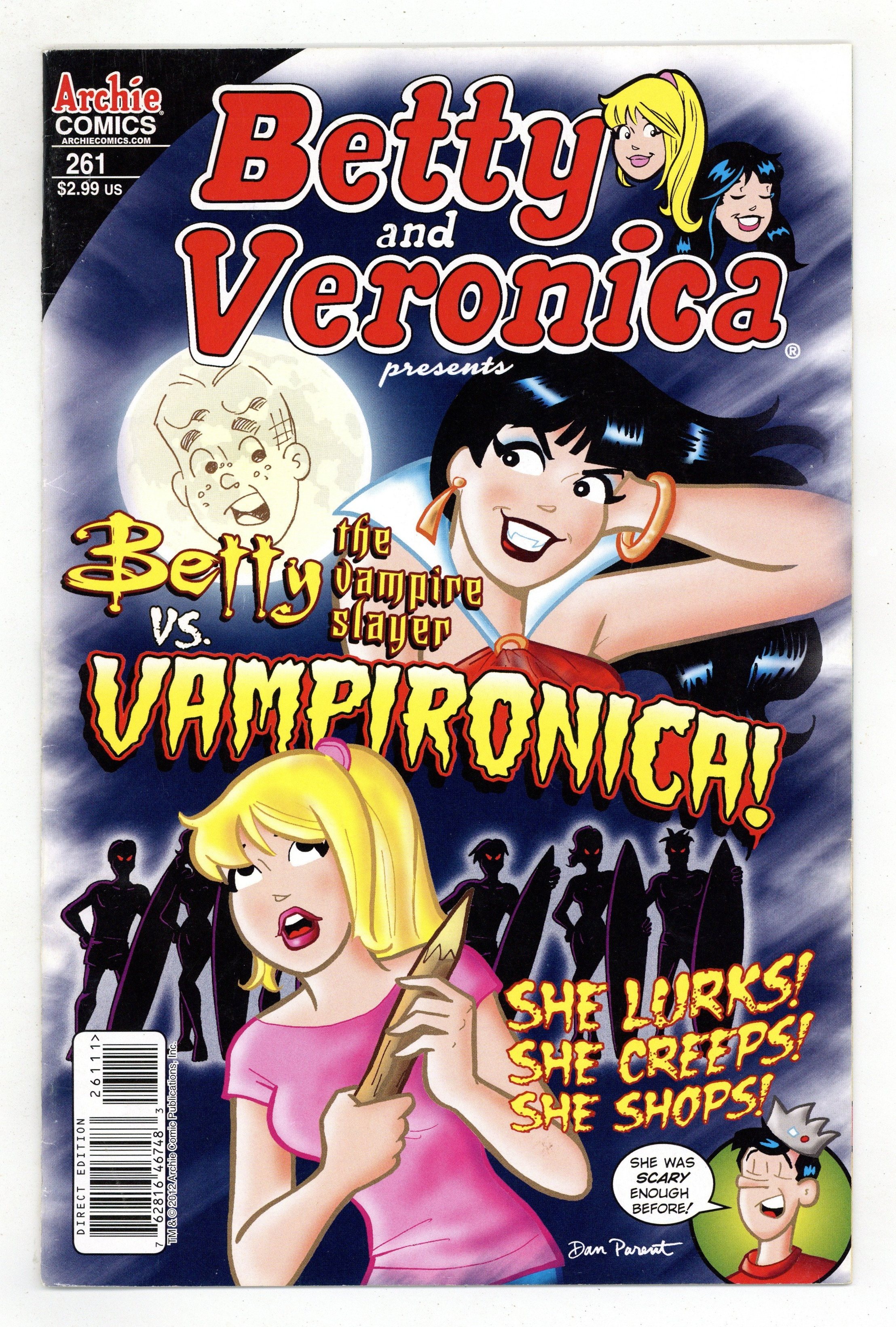 Direct Edition. (W) Dan Parent (A) Dan Parent, Rich Koslowski (CA) Dan Parent The gang enjoys a night at the beach meeting some new friends, but there's something odd about this group who only comes out at night. It's not until after Veronica is bitten by a bat that her friends notice something truly evil is in their midst! Caught in the middle of two rival vampire gangs, can Betty rid her town of the bloodsuckers before they turn all her friends into creatures of the night? Don't miss the opening chapter of this spooky two-part tale of suspense! Cover price $2.99. Grade: VG+ 4.5 explanation of grade Condition: Used (collectible)