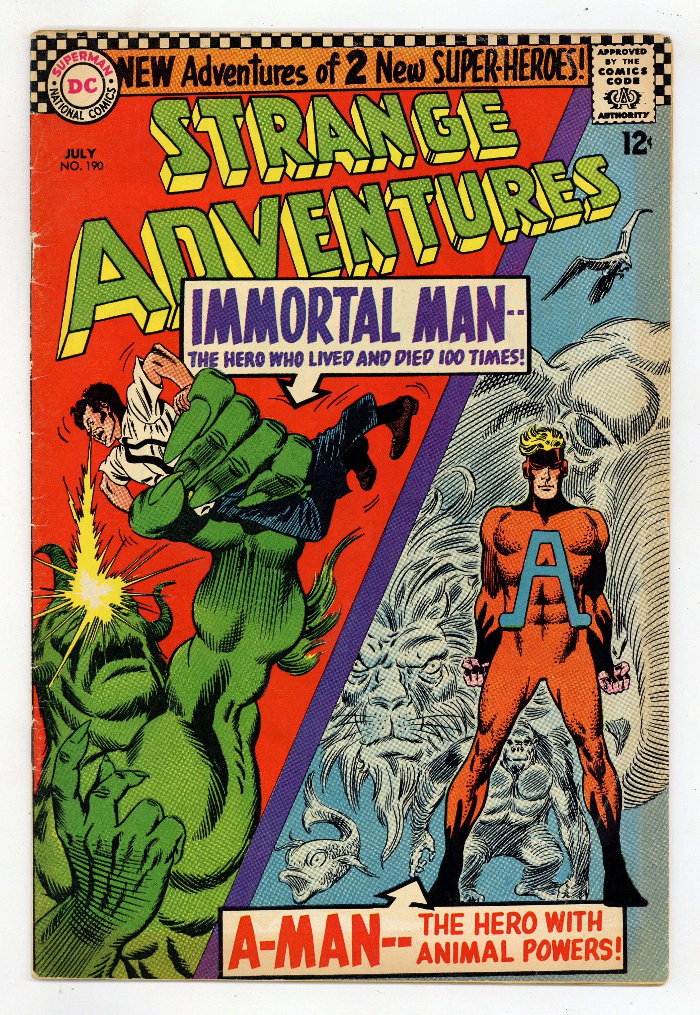 First appearance of Animal Man in costume in "A-Man--the Hero With the Animal Powers" (pencils by Carmine Infantino); and "Immortal Man." Statement of ownership--average print run 313,000; average paid circulation 187,000. 36 Pages, Full Color. Cover price $0.12. Grade: GD+ 2.5 explanation of grade Condition: Used (collectible)