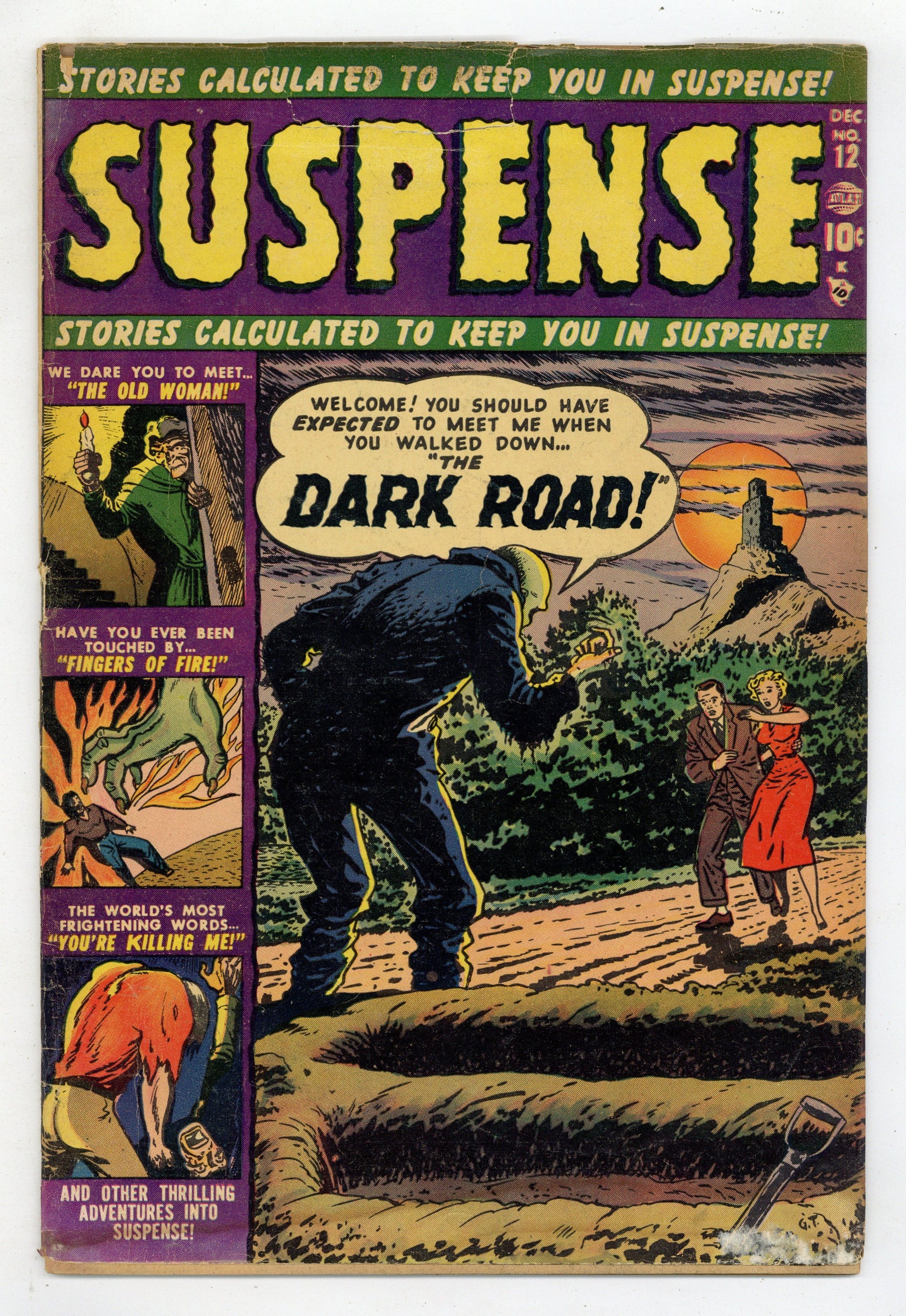 "The Dark Road" (art by Russ Heath), "The Trumpet!" (art by Joe Maneely), "You're Killing Me!" (art by Norman Steinberg), "Draw Me a Picture," "Fingers of Fire," and "The Old Woman" (art by Paul Reinman). Cover price $0.10. Grade: GD- 1.8 explanation of grade Condition: Used (collectible)