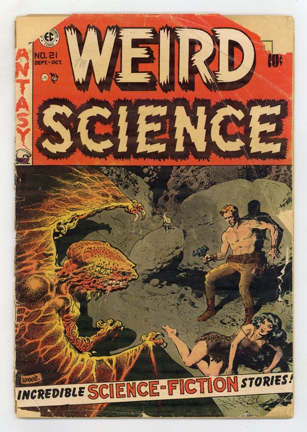 Bill Gaines and Al Feldstein appear in "EC Confidential" (art by Wally Wood), "Punishment Without Crime" (art by Jack Kamen), "Two's Company" (art by Al Williamson with Frank Frazetta), and "The Ugly One" (art by Joe Orlando). Wood cover. 36 pages, full color. Cover price $0.10. Grade: FR 1.0 explanation of grade Condition: Used (collectible)