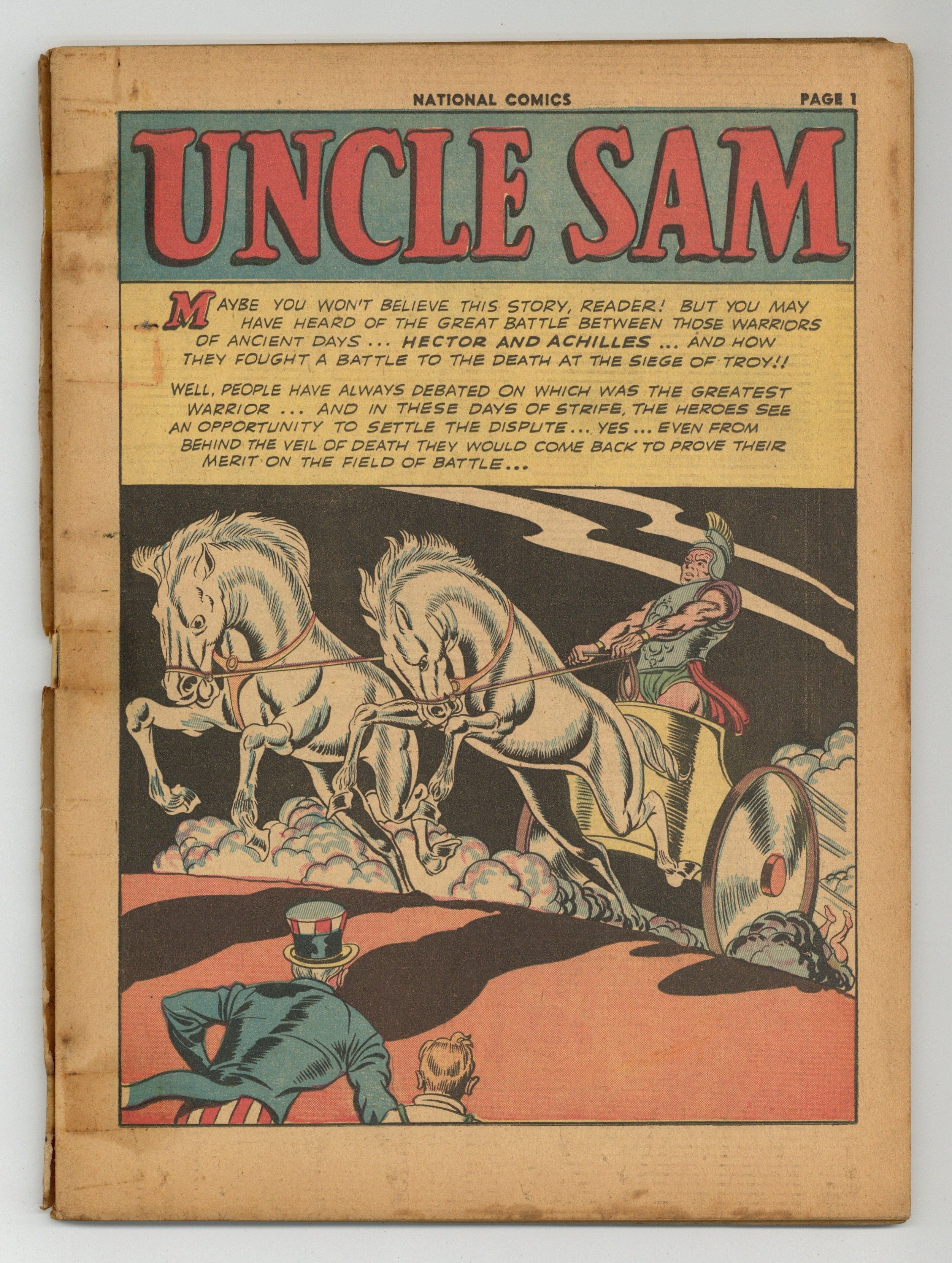 Cover art by Reed Crandall. Untitled stories starring Uncle Sam (art by Al Gabriele), Sally O'Neil Policewoman (art by Al Bryant), Windy Breeze (script and art by Jack Cole), Kid Patrol, Kid Dixon (script and art by Klaus Nordling), Quicksilver, Destroyer 171 (pencils by John Cassone, inks by Andre LeBlanc), The Unknown (art by Al Gabriele), and G-2 (art by Ruben Moreira). 68 pgs. $0.10. Cover price $0.10. Grade: PR 0.5 explanation of grade Condition: Used (collectible)