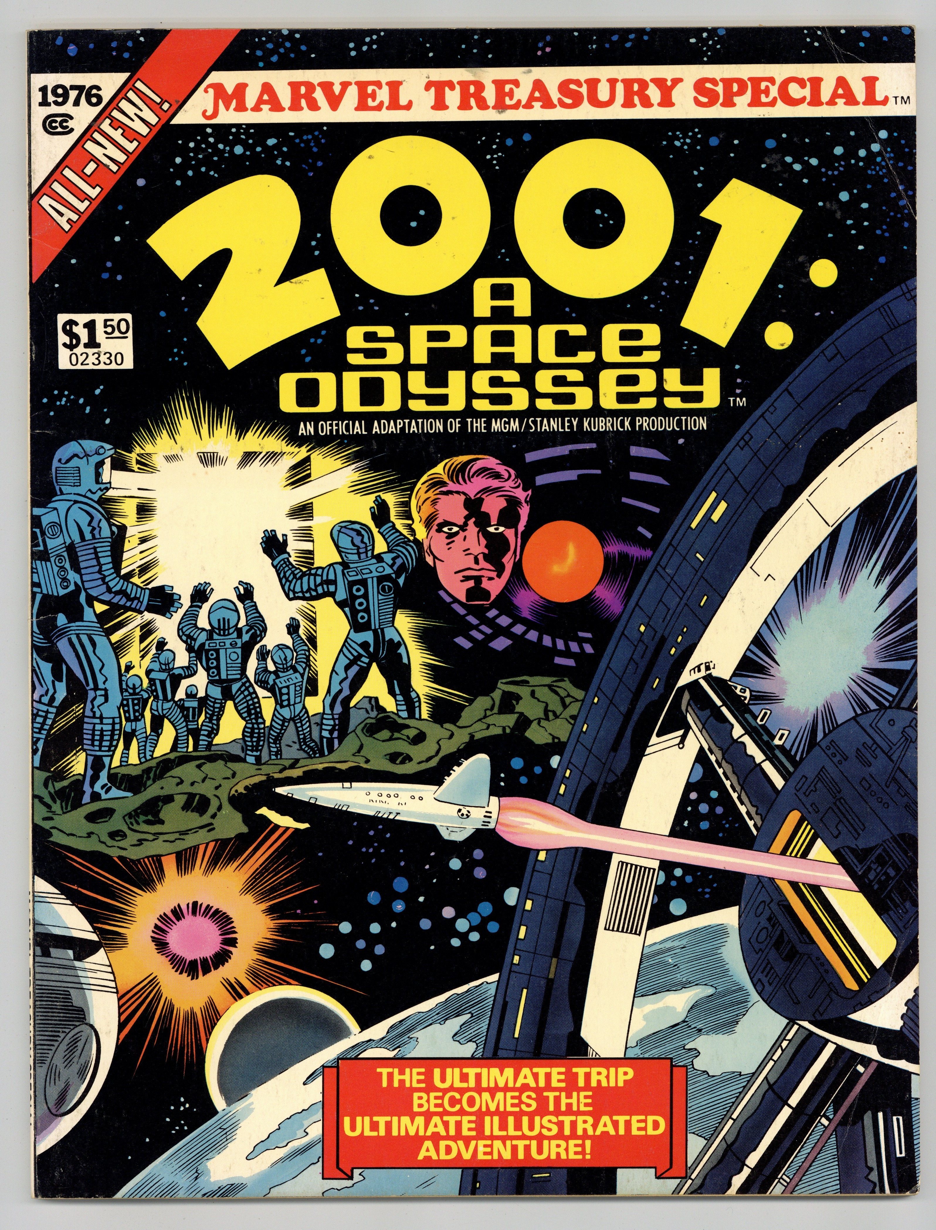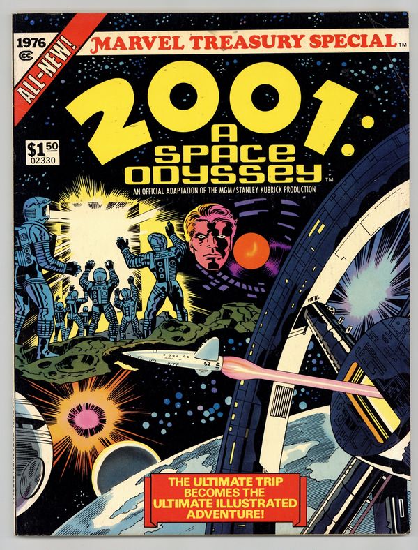 2001: A Space Odyssey Treasury (1976) is an official adaptation of the movie directed by critically acclaimed Stanley Kubrick. Adapted by legendary writer/artist Jack Kirby with inks by Frank Giacoia. Also included is a 2001: A Space Odyssey retrospective and photos by Dave Kraft from the movie. 82 pages. Cover price $1.50. Grade: VG+ 4.5 explanation of grade Condition: Used (collectible)