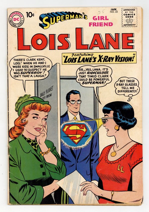 Cover pencils by Curt Swan, inks by Stan Kaye. The Day When Superman Proposed!, script by Jerry Siegel, art by Kurt Schaffenberger; After accidental exposure to Red Kryptonite Superman proposes to Lois Lane. Cora the Car Hop story by Henry Boltinoff. House ad for Superman Annual #2. Lois Lane's X-Ray Vision!, script by Robert Bernstein, art by Kurt Schaffenberger; An accident causes Lois' glasses to become X-Ray glasses. Sweetheart of Robin Hood!, art by Kurt Schaffenberger; Lois and Clark are in England covering the opening of the Robin Hood Museum when Lois scratches herself on a poisoned arrow, causing her to faint and dream of living in Robin Hood's time. 36 Pages, Full Color. Cover price $0.10. Grade: GD/VG 3.0 explanation of grade Condition: Used (collectible)
