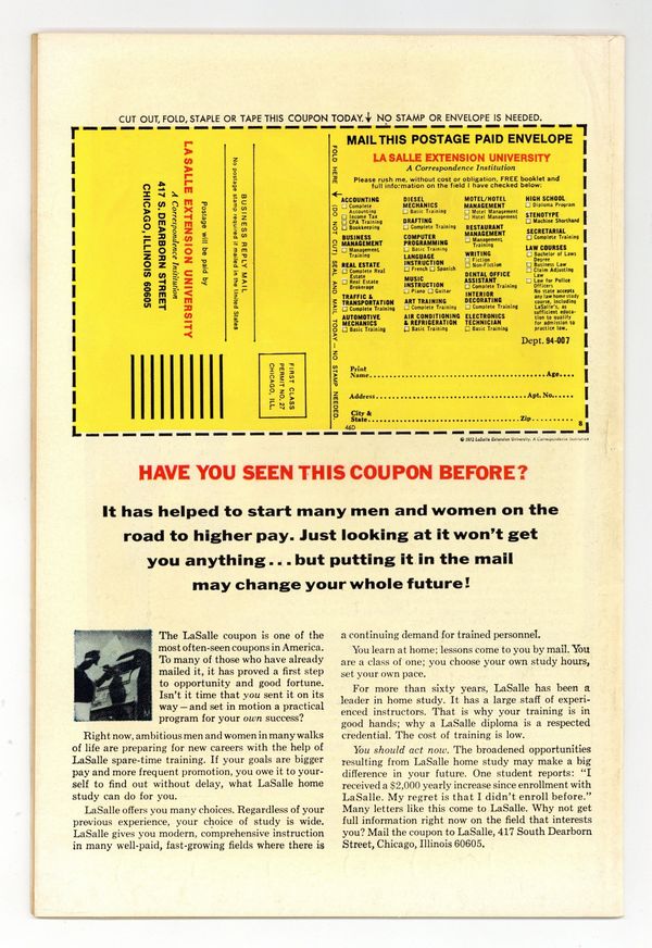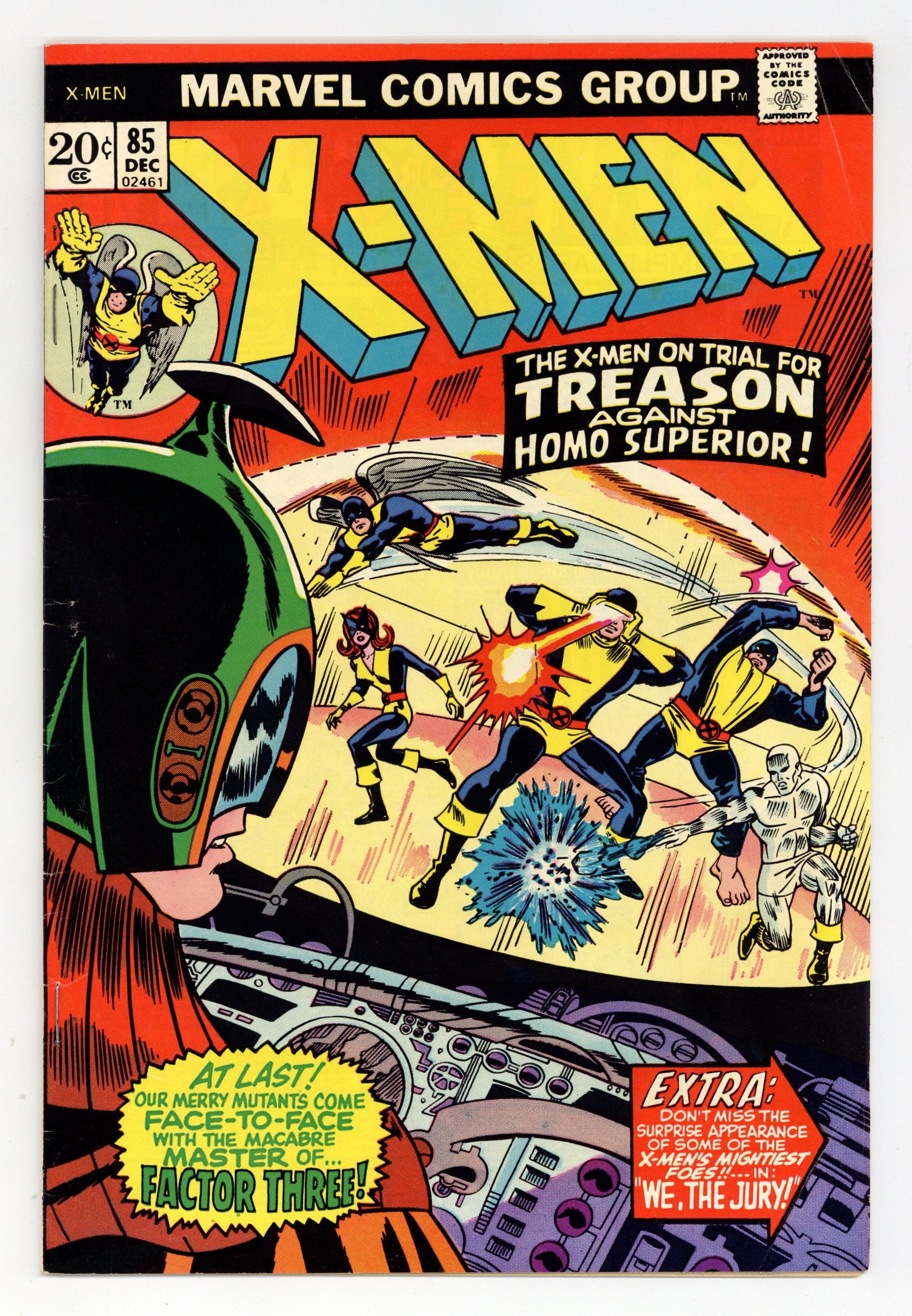 Starts Jan 19 Cover pencils by Jack Kirby, Don Heck, John Romita, and John Verpoorten (alterations), inks by George Roussos, John Romita, and John Verpoorten. We, the Jury, script by Roy Thomas, pencils by Ross Andru, inks by Don Heck; the X-Men battle the Factor Three in Europe; the Mutant-Master holds Professor X and Banshee captive; Juggernaut cameo; reprinted from issue 37. 36 pgs. $0.20. Cover price $0.20. Grade: VG/FN 5.0 explanation of grade Condition: Used (collectible)