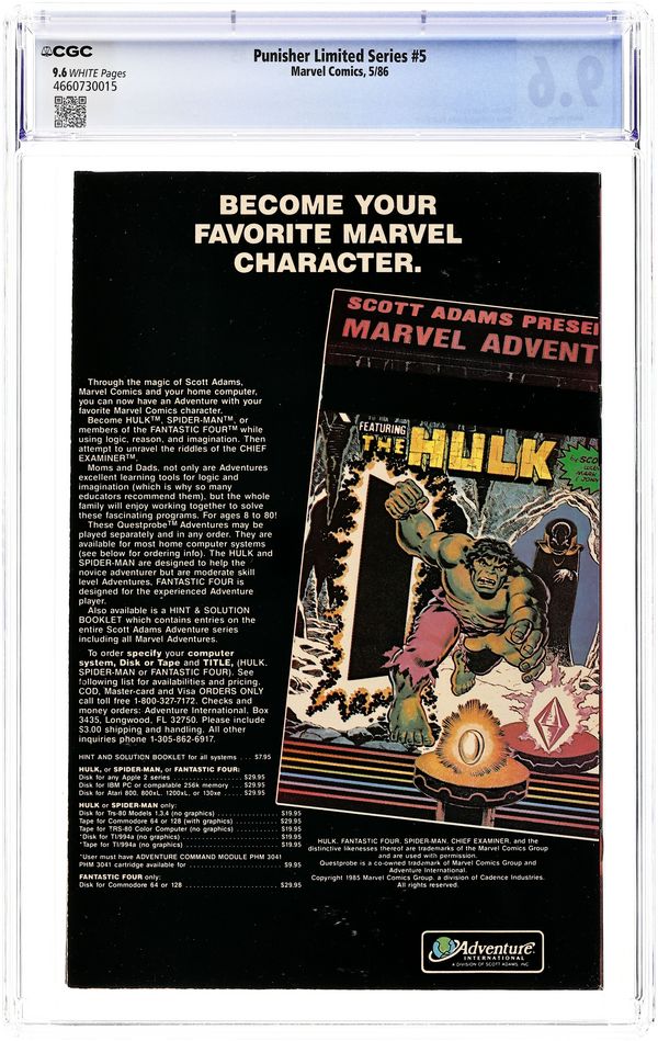 Direct Edition. "Final Solution: Part 2!" Story by Steven Grant and Jo Duffy. Art by Mike Vos and John Beatty. Cover by Mike Zeck and Phil Zemelman. The final chapter to the Punishers return to his war on crime concludes. Cover price $0.75. Grade: CGC 9.6 explanation of grade Condition: Used (collectible)
