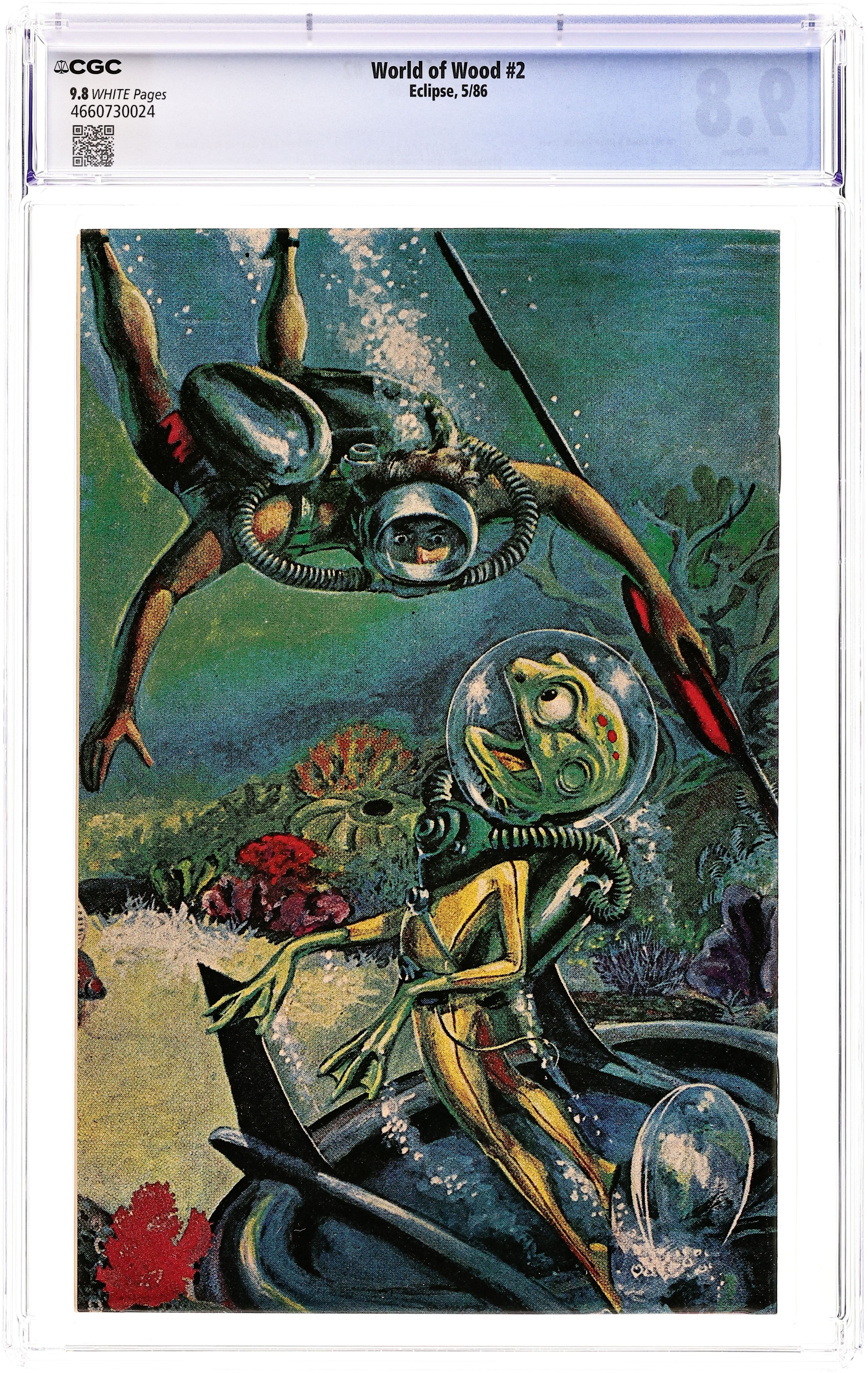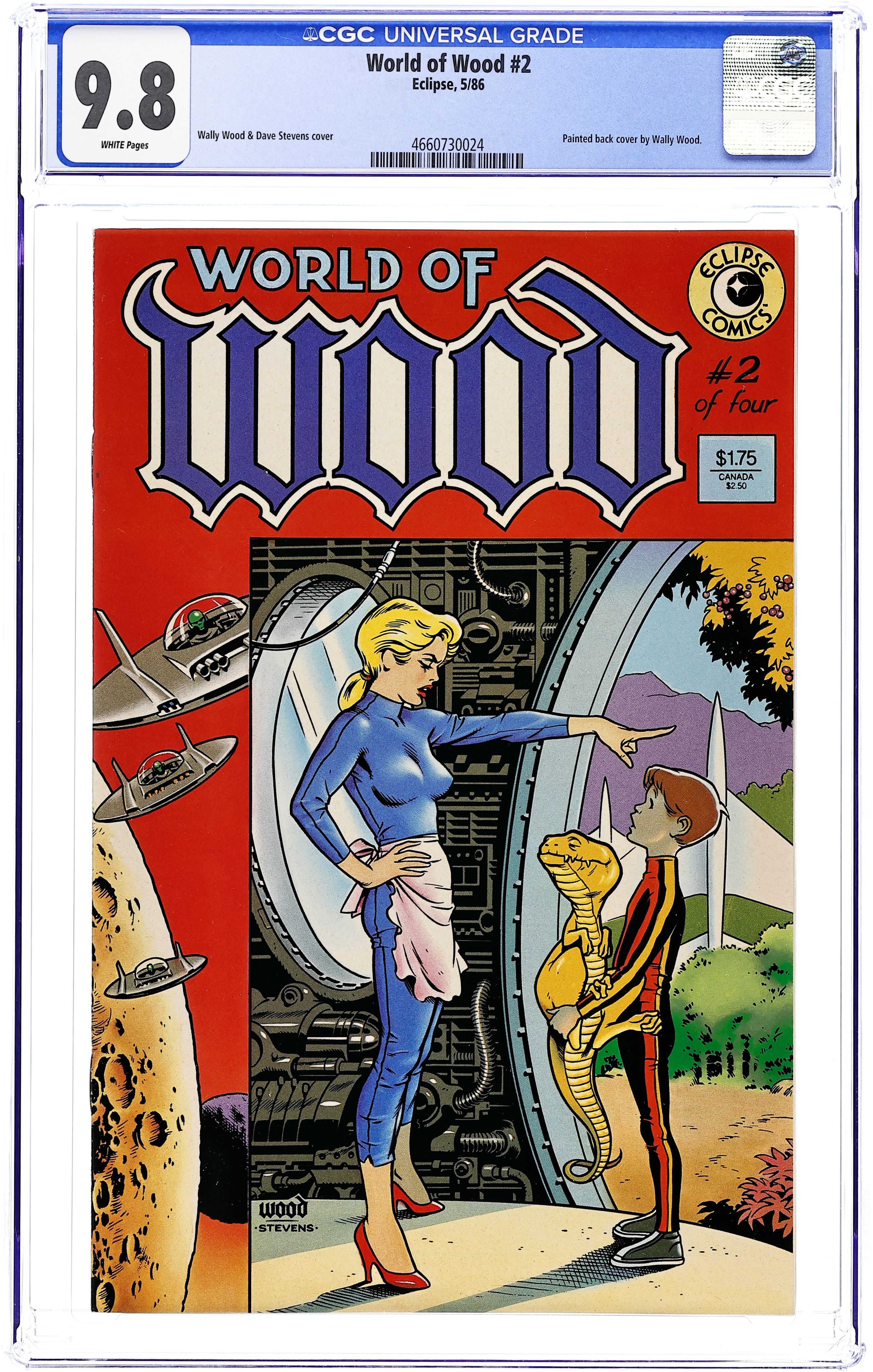 Cover pencils by Wally Wood, inks by Dave Stevens. Text page about Wally Wood and what he meant to Cat Yronwode. The End, script and art by Wallace Wood. The Cosmic All, script and art by Wallace Wood. War of the Wizards, script and art by Wallace Wood. Pinup by Wallace Wood. 36 pgs. $1.75. Cover price $1.75. Grade: CGC 9.8 explanation of grade Condition: Used (collectible)