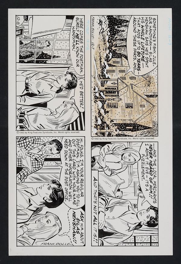 Original Art for the Heart of Juliet Jones Comic Strip (12/7 & 12/8 1992) by Frank BollePublished 1992Original Art for the Heart of Juliet Jones Comic Strip (12/7 & 12/8 1992) by Frank Bolle