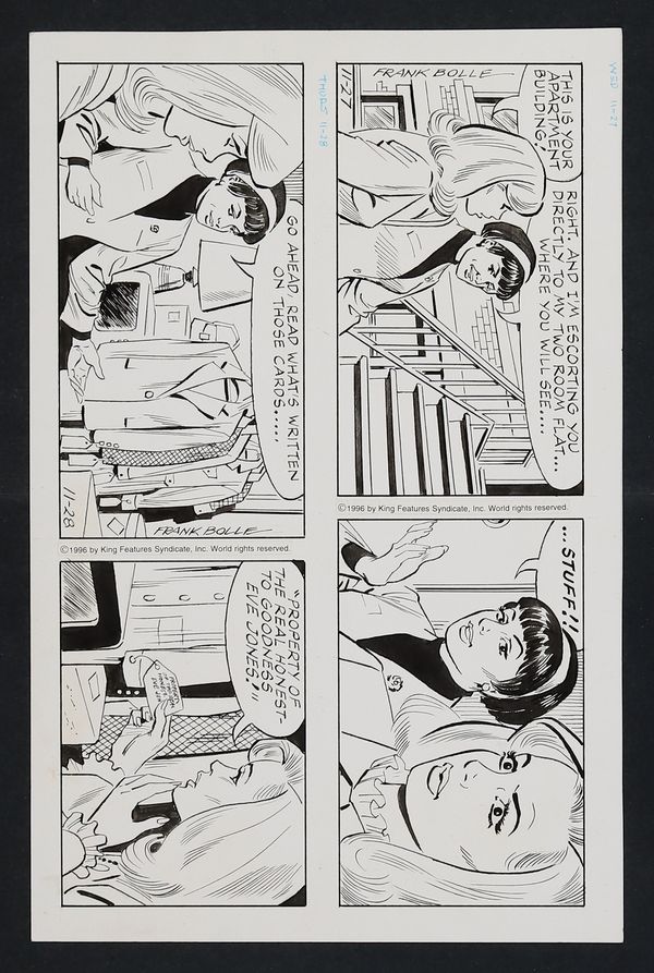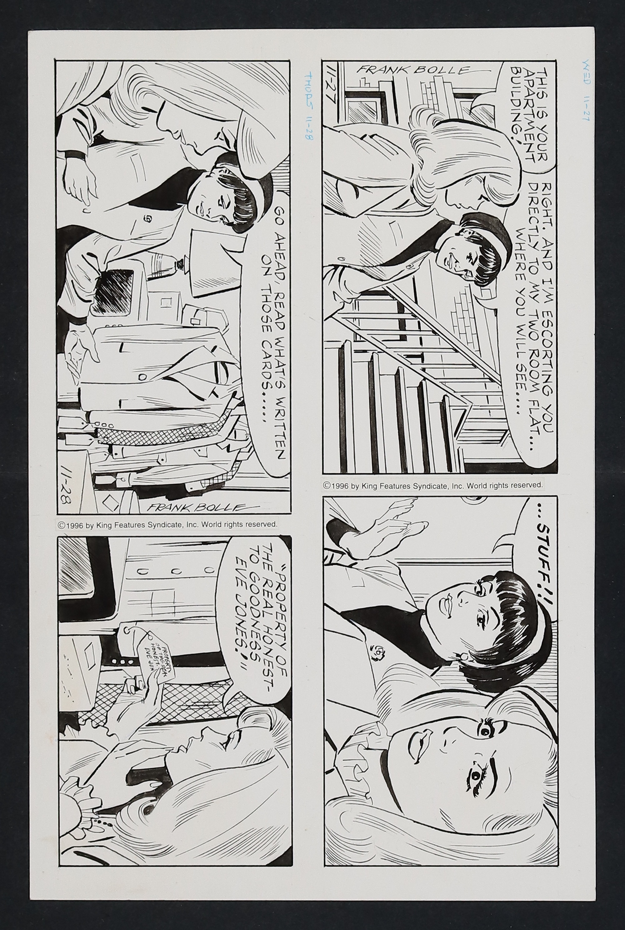 Original Art for the Heart of Juliet Jones Comic Strip (11/27 & 11/28 1996) by Frank BollePublished 1996Original Art for the Heart of Juliet Jones Comic Strip (11/27 & 11/28 1996) by Frank Bolle