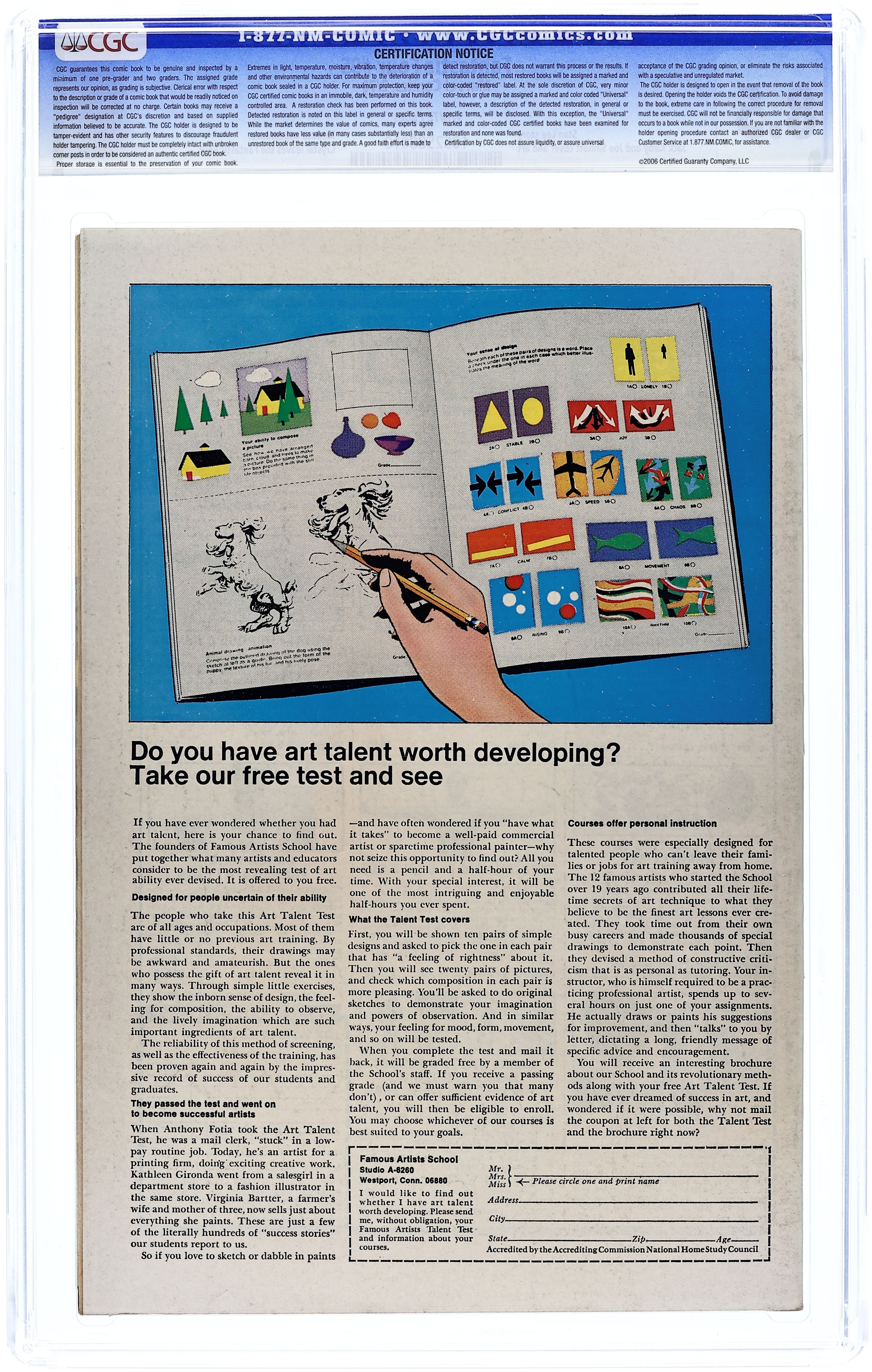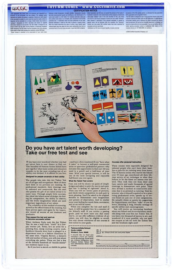 "Tomorrow, World War Three!" Script by Stan Lee. Pencils by Jack Kirby. Inks by Joe Sinnott. Cover by Jack Kirby and Joe Sinnott. A special United Nations delegation visits New York City to promote world peace! And during the foreign group's visit, the Fantastic Four will serve as their designated bodyguards! This should be a simple assignment for Reed, Sue, and Ben given their recent encounters against the Mole Man, Frightful Four, and Skrulls; but a lesson in international espionage is coming their way! A mysterious man called the Monocle stirs up trouble for the FF and puts the world on the verge of global anarchy! Meanwhile inside the Baxter Building trouble is also brewing! However it doesn't involve international affairs…but affairs of the heart. Medusa has come to collect her little sister and return to the Hidden Land. Will Johnny let Crystal go without a fight? First appearance of the Monocle. (Notes: The Monocle returns years later in Fantastic Four 204. This issue includes a full-page ad for Iron Man 22 and Thor 172.) 36 pages Cover price $0.15. Grade: CGC 8.5 explanation of grade Condition: Used (collectible)