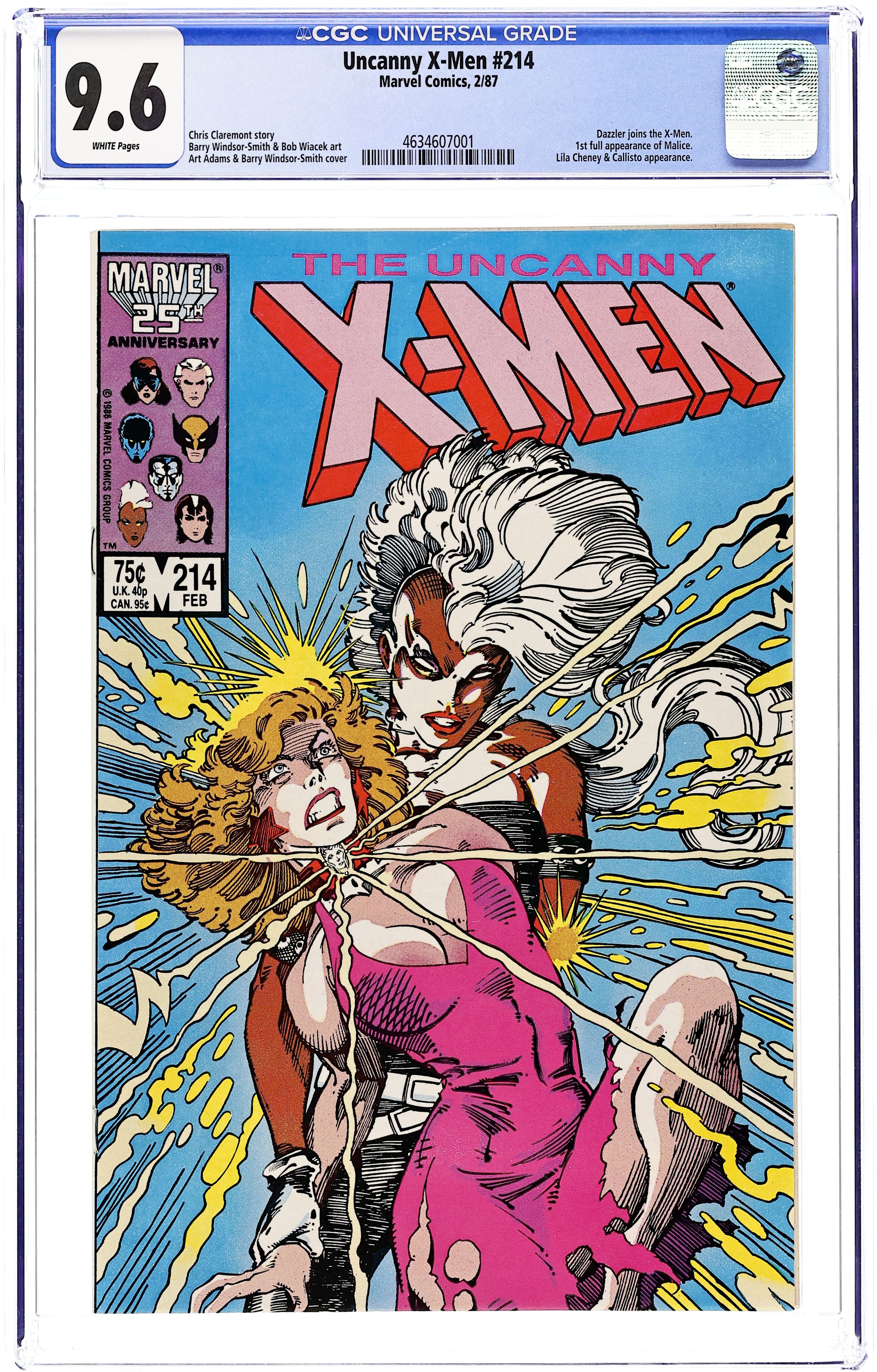 Starts Jan 19 Direct Edition. "With Malice Towards All!" Story by Chris Claremont. Art by Barry Windsor-Smith. Dazzler returns! But when the mutant villain Malice usurps control over her, the X-Men may wish she had stayed away. 36 pgs. Cover price $0.75. Grade: CGC 9.6 explanation of grade Condition: Used (collectible)