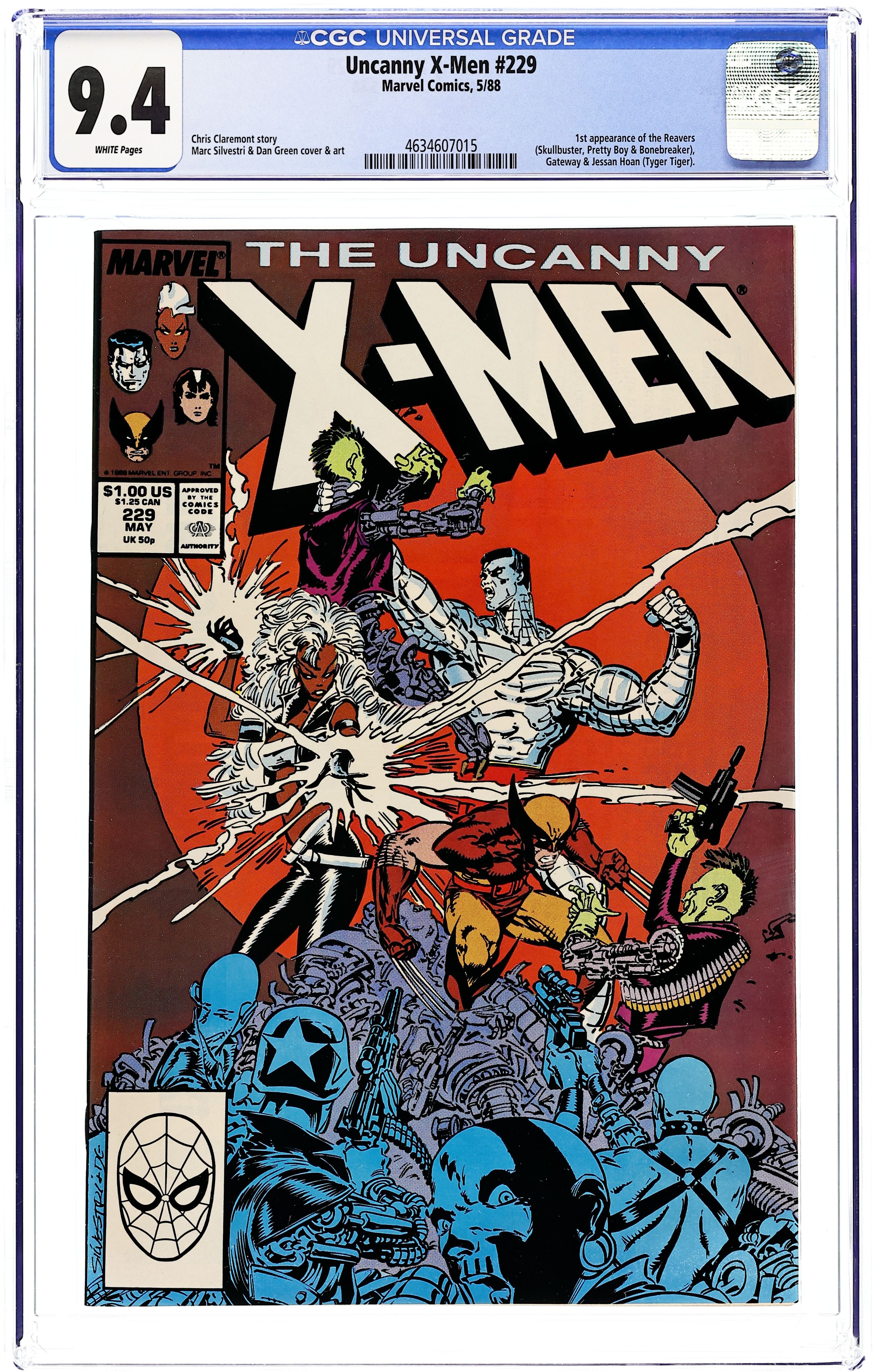 "Down Under!" Story by Chris Claremont. Art by Marc Silvestri and Dan Green. A new era for Marvel's Merry Mutants begins here. The world believes the X-Men is dead. Perished while saving the world from the demonic Adversary (see Uncanny X-Men #225-227). The X-Men use this opportunity to do some real good anonymously. First order of business, securing a base of operations. The Reavers base will do just fine. It's mutants vs. an army of killer cyborgs in the Mighty Marvel Manner! NOTE: 1st appearance of the Reavers and Gateway. 36 pgs. Cover price $1.00. Grade: CGC 9.4 explanation of grade Condition: Used (collectible)