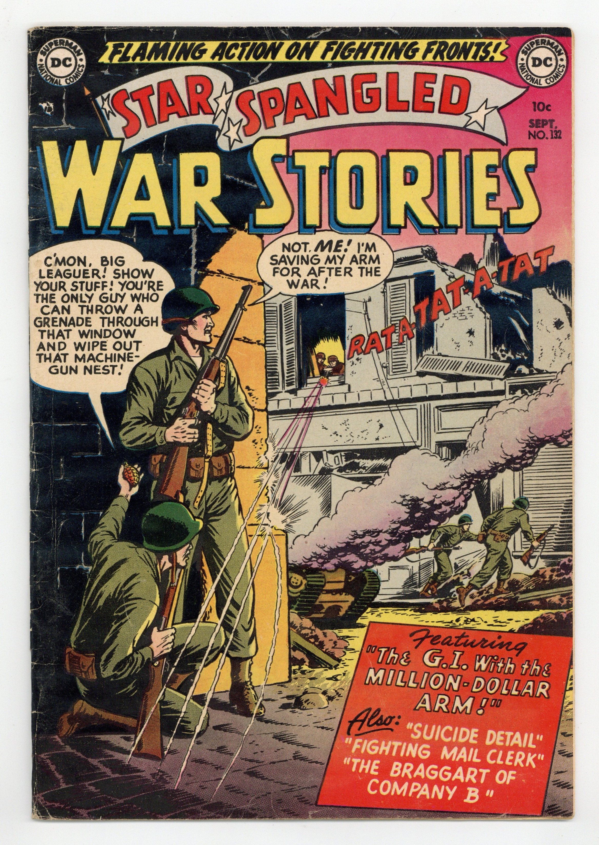 Second issue of the 10c cover-priced series. The first three issues of Star Spangled War Stories (1952)--#131-133--picked up the numbering from the last issues of Star Spangled Comics #1-130). NOTE: There is also a 12c cover priced edition with the same issue number that was published in 1967. 36 pages, full color. Cover price $0.10. Grade: VG 4.0 explanation of grade Condition: Used (collectible)