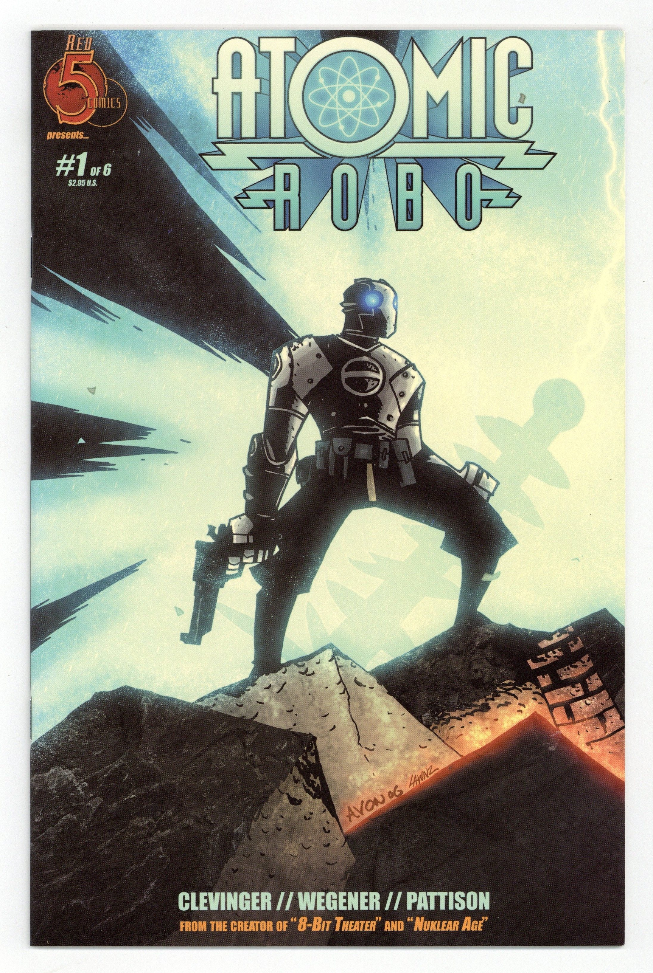 First Printing. by Clevinger & Wegener The action-science adventures of Nikola Tesla's automated intelligence machine begin in 1938. Atomic Robo is secretly hired by the U.S. Army to infiltrate the hidden Himalayan mountain base of Baron Heinrich Von Helsingard before he perfects a superweapon for the Nazis. Cover price $2.95. Grade: FN/VF 7.0 explanation of grade Condition: Used (collectible)