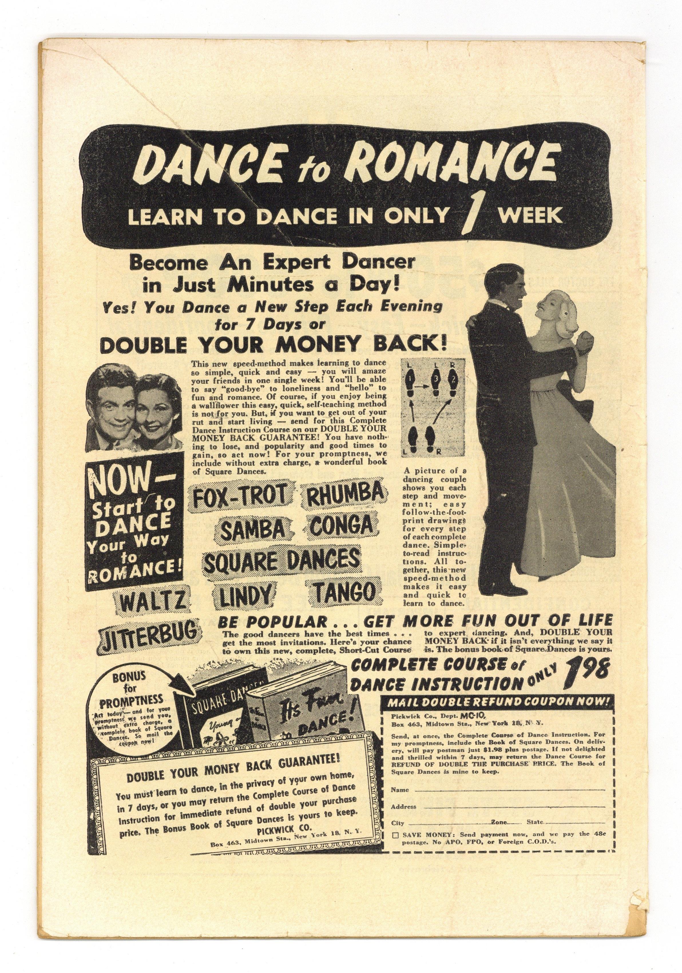 Cover art by Dick Beck. "No Law in Love!", art by Ross Andru; Law professor Marcia agrees to marry stuffy Dean Monroe, although he is 20 years older than she is; Former Korean War POW Pete enrolls as a student and Marcia falls in love with him; Marcia overhears Monroe threatening to ruin Petes future if he doesnt dump Marcia, so she breaks up with Pete for his own good. "Give Me Back my Ring"; Patti is engaged to Johnny; he leaves on a business trip and she agrees to escort his former Army buddy Gordon around town; Gordon feels ill and while they are waiting for a doctor, Gordons wife and some private detectives catch him and Patti in his hotel room. "Love Thief - My Sister" text story. "Confession of a Heel!", art by Jon D'Agostino; Photographer Roger is a womanizer who even flirts with his secretary Elaine; Elaine announces shes engaged to someone else, but Roger thinks shes lying; He romances her on a business trip to Bermuda, then discovers he really does love her. "One Moment of Love"; Lindas boyfriend Rod moves to Chicago to become an actor; She agrees to wait for him as long as it takes; Rod becomes famous and marries someone else. Linda marries lawyer Howard on the rebound, even though she still loves Rod. 36 pgs., full color. Cover price $0.10. Grade: GD+ 2.5 explanation of grade Condition: Used (collectible)