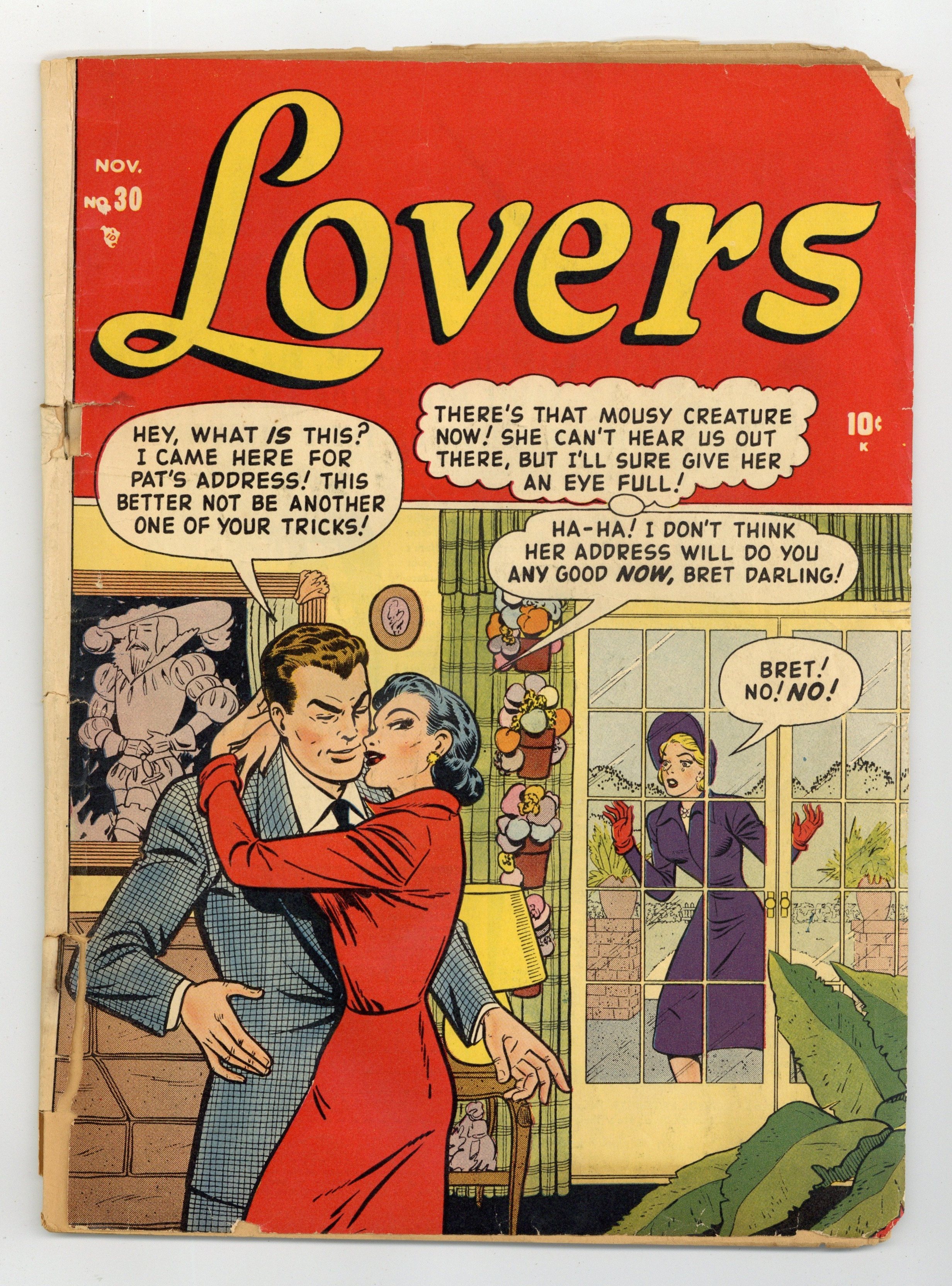 Stories by unknown. Art by Bob Powell, Joe Kubert and unknown. "I Was a Fugitive from Love" with art by Bob Powell - Pat and Greg are engaged, but Pat's sister Pauline says Greg has 'been turned down by every girl in town!" (including Pauline) When Greg refuses to "explain" his past, Pat breaks their engagement and leaves town, moving in with college friend Ellen and getting a job as a stenographer. Pat goes home to give Greg another chance, but Pauline tricks her into thinking she's Gregs new sweetheart. Ellen throws a party and invites Greg, who explains Pauline's deception, and he and Pat are reconciled. "Cinderella Can Also Cry" - Donna grew up poor, but her family suddenly inherited a fortune. She falls in love with wealthy Roger, only to learn his father's bank is about to go broke and they're counting on Donna's money to save it. Donna leaves town for an "inexpensive resort," where she hides her economic status. Donna falls in love with Milt, but mistakenly thinks he's also a fortune hunter. Milt explains that he's rich, and hid his wealth to discourage women gold-diggers. Since they're financially compatible, Donna and Milt can wed. "Blind Love" with pencils by Joe Kubert - Newspaper columnist Joyce pities her childhood friend Dora, now movie star Dorine, because "she had lost any knowledge or feeling of romance in the false tinsel of her life!" To spite Joyce and also get good publicity for her movies, Dorine vows to make blind war hero Ronald fall in love with her. Joyce refuses to be part of the scheme, because she loves Ronald herself -- and he reciprocates her affections. Plus: 2-page text story "My Jealous Heart"! 32 pages, full color. Cover price $0.10. Grade: FR 1.0 explanation of grade Condition: Used (collectible)