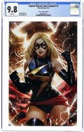 Starts Jan 3 Limited 1 for 50 Retailer Incentive Variant Cover. Written by Ann Nocenti. Art by Paolo Villanelli. Cover by Derrick Chew. EARTH'S MIGHTIEST! After facing off against the Brood with the X-Men and losing someone she holds dear, Carol Danvers needs a break. She's not about to get it now! A slinky new cosmic threat comes for Earth's Mightiest, and they know just who to recruit to really wreck Carol's world - a surprise legacy villain! Join industry legend Ann Nocenti and artist Paolo Villanelli of STAR WARS: BOUNTY HUNTERS fame as they take the torch from Kelly Thompson's record-breaking run and slingshot Captain Marvel from the Harpswell Sound to the far reaches of the galaxy! 40 pages, full color. Rated T+ Cover price $4.99. Grade: CGC 9.8 explanation of grade Condition: Used (collectible)