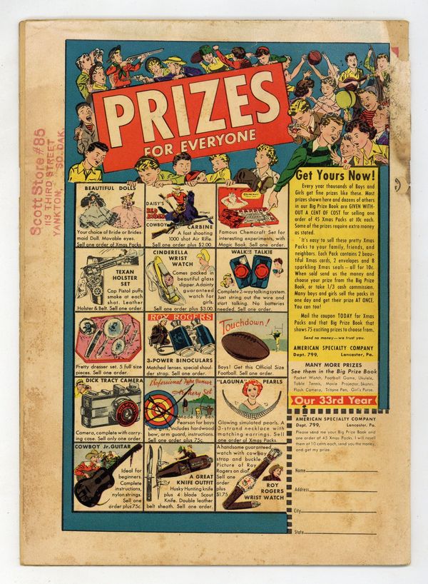 Cover by L. B. Cole. Stories and art by L. B. Cole and others. Part of Star Publications' purchase of Novelty Publications titles, former adventure comic 4Most becomes one of the most violent of the pre-Code crime titles, with lurid covers by L. B. Cole. The Gunmaster tracks a gang of killers to a skyscraper, but the gang's redheaded femme fatale gets the drop on him. Police use modern communications to trap fleeing criminals in their dragnet. Criminal trio Gus, Harvey and Peter use robbery and murder in 1900 Chicago. State Prison Slaughter; Clue To A Killer; The Deadly Game; Escape; Crime of Terror. 32 pages, Full Color. Cover price $0.10. Grade: GD- 1.8 explanation of grade Condition: Used (collectible)