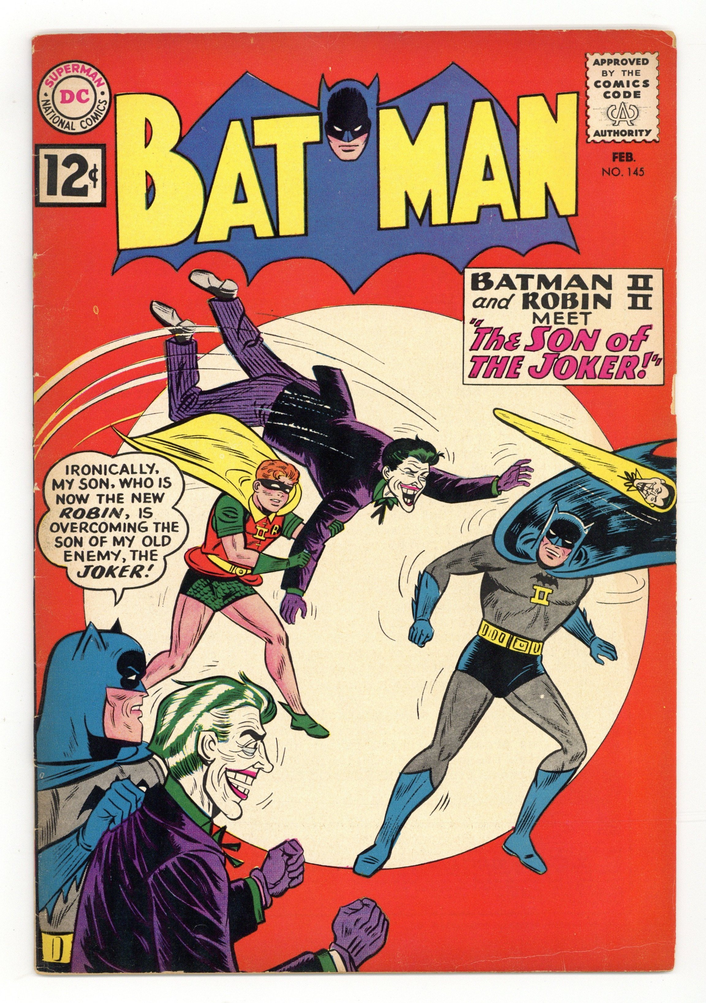 Starts Jan 3 Cover by Sheldon Moldoff. "Hunt for Mr. 50," script by Bill Finger, pencils by Sheldon Moldoff, inks by Charles Paris; The Dynamic Duo trace a smuggling ring to Hawaii and travel there to confront them in order to locate the ring leader. Half-page Lefty Looie story by Henry Boltinoff. "The Tiniest Villain in the World," script by Bill Finger, pencils by Sheldon Moldoff, inks by Charles Paris; When the Caped Crusader learns that Joe Burr has kidnapped a noted inventor of a shrinking machine, Batman deliberately shrinks himself to miniature size to capture the villain. Let Science Serve You! public service announcement. "The Son of the Joker," script by Bill Finger, art by Sheldon Moldoff (as Bob Kane); In this imaginary story, penned by Alfred, trusted butler of Bruce Wayne, the Second Batman and Robin team run up against the Son of the Joker, who is using the tricks of the trade once used by his father! Full-page ads for Batman Annual 2 and Superman Annual 4. Statement of ownership; 485,000 average sales. 36 Pages, Full Color. Cover price $0.12. Grade: VG- 3.5 explanation of grade Condition: Used (collectible)