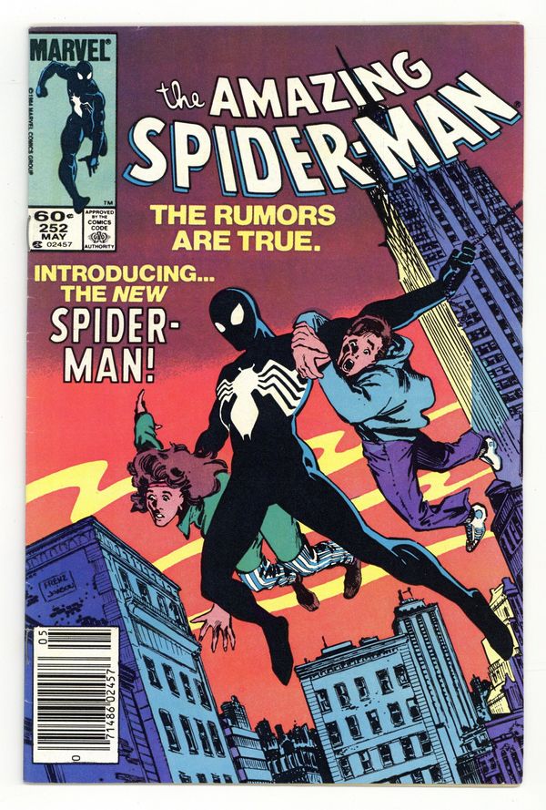 Tags: Chronological Appearances of Spider-Man's Black Costume (part 09 (1st Official Debut)), Marvel Legacy Numbering: Amazing Spider-Man (part 252), Secret Wars (1984) (part Aftermath 01), Spider-ManAmazing Spider-Man (1963 1st Series) 252N VG+ 4.5 Newsstand Variant