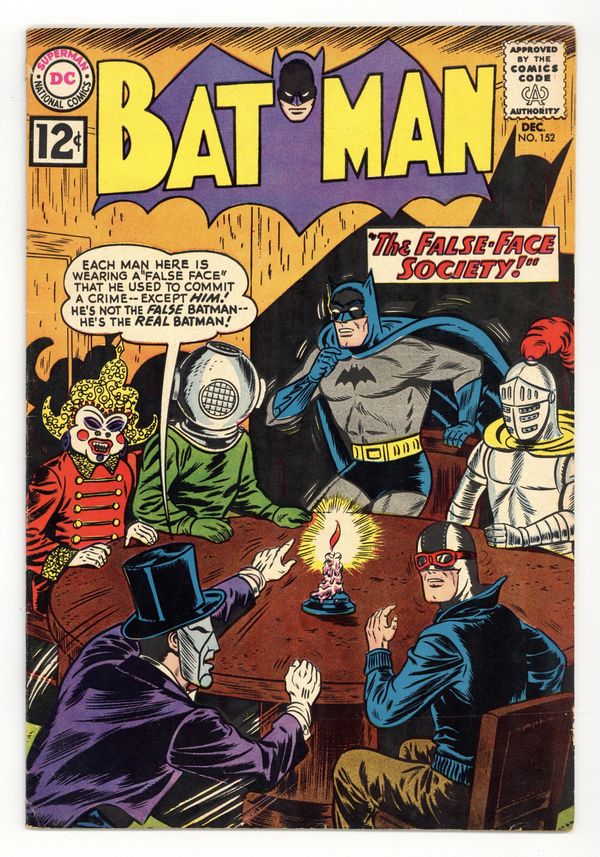 Cover by Sheldon Moldoff. "Formula for Doom," script by Bill Finger, pencils by Sheldon Moldoff, inks by Charles Paris; The Caped Crusaders and Bat-Hound track a renegade scientist to Switzerland, who is in the process of handing over a portion of an explosive formula to a European criminal. One-page Casey the Cop story by Henry Boltinoff. "The False Face Society," script by Bill Finger, pencils by Sheldon Moldoff, inks by Charles Paris; Batman goes undercover as a member of the False Face Society in order to get the goods on and capture their leader. True Crime Laffs humor page by Henry Boltinoff. "Memorial to an Astronaut," script by Bill Finger, pencils by Sheldon Moldoff, inks by Charles Paris; Batman decides to make the dream of traveling into space a reality for a dying mineralogist by devising a hoax involving a phony spaceship and a movie set. Pennies for UNICEF! public service announcement with Superman, art by Sheldon Moldoff. 36 Pages, Full Color. Cover price $0.12. Grade: VG 4.0 explanation of grade Condition: Used (collectible)