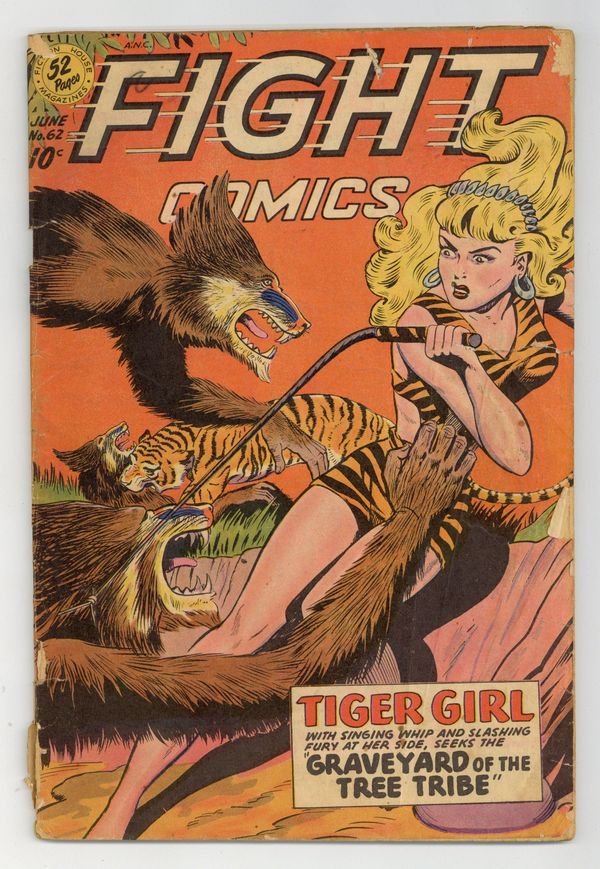 Cover by Joe Doolin and others. Edited by Joseph V. Daffron and Jerry Iger. Stories and art by Jack Kamen, Robert Webb, John Forte, and David Heames. A combat-themed anthology from Fiction House that featured early work from many future comics legends (often uncredited) in the Eisner-Iger Shop. Tiger Girl meets a cult of Egyptians who are making a pilgrimage to a temple hidden in the African jungles; Enemy agents infiltrate Captain Fight's ship and engineer a mutiny; Once more, Hooks Devlin's gal Peaches gets him out of a jam. Tiger Girl; Risks, Unlimited starring Rip Carson; Kayo Kirby; World Adventurers - William Phips; Hooks Devlin; Senorita Rio; Captain Fight. 48 pages, Full Color. Cover price $0.10. Grade: GD+ 2.5 explanation of grade Condition: Used (collectible)
