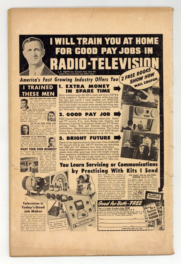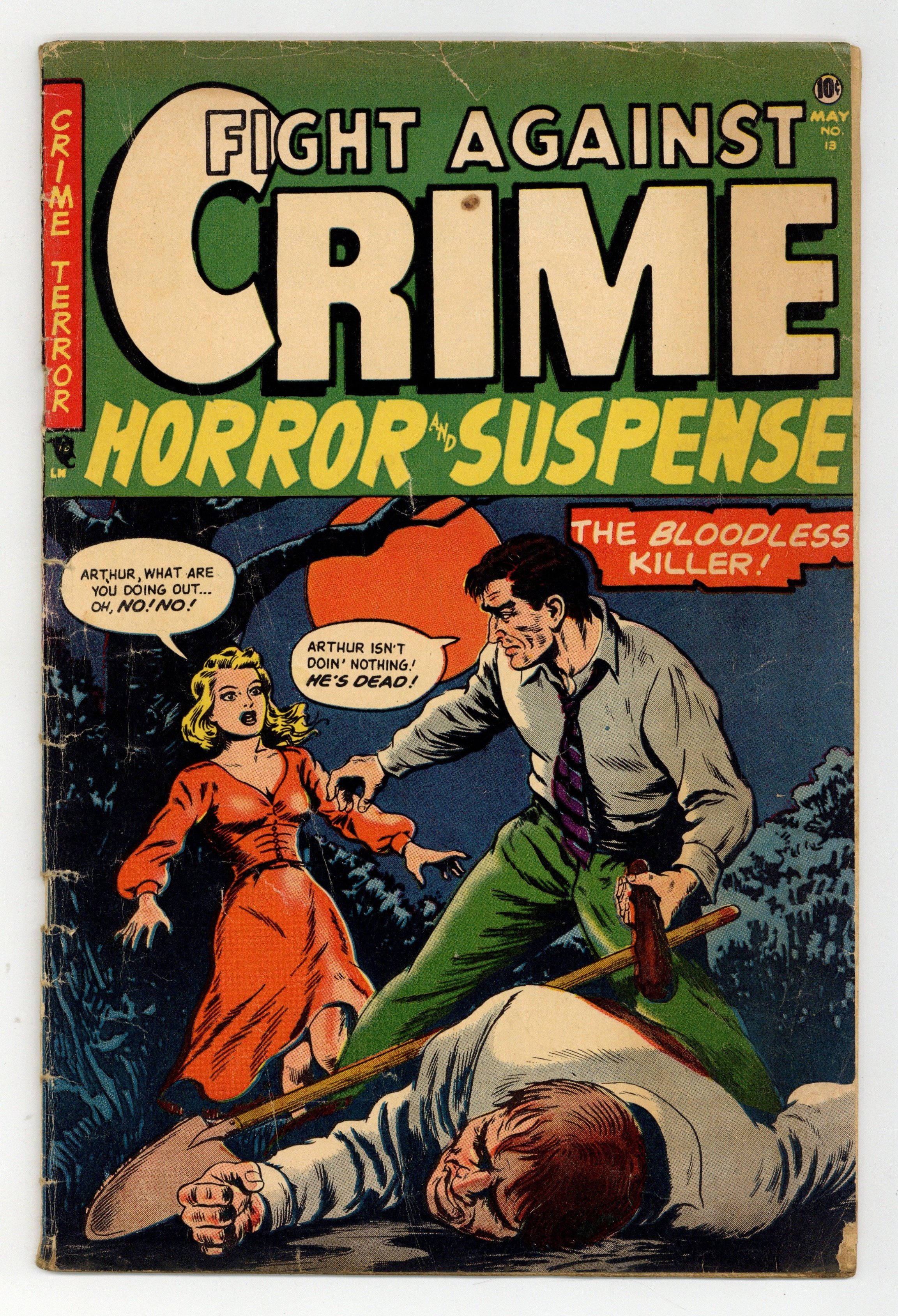 Cover by Dick Beck. Stories and art by Alvin C. Hollingsworth, Sal Trapani and Ed Goldfarb. Pre-Code tales of EC-style horror from Story Comics. Seeking revenge for his wife's death, a doctor ensures that a reporter really does have ink in his veins. Cowardly Crowell goes on safari with his wife, but when she has an affair with the guide, he manages to make at least one kill. A horror host (based on EC's Crypt-Keeper) reveals the story of Paul, who falls in love with the vampire next door. Two Heads Are Better Than One; Deadline; The Rat and the Rattlesnake; The Big Game Hunter; The Bloodless Killer. 32 pages, Full Color. Cover price $0.10. Grade: GD+ 2.5 explanation of grade Condition: Used (collectible)
