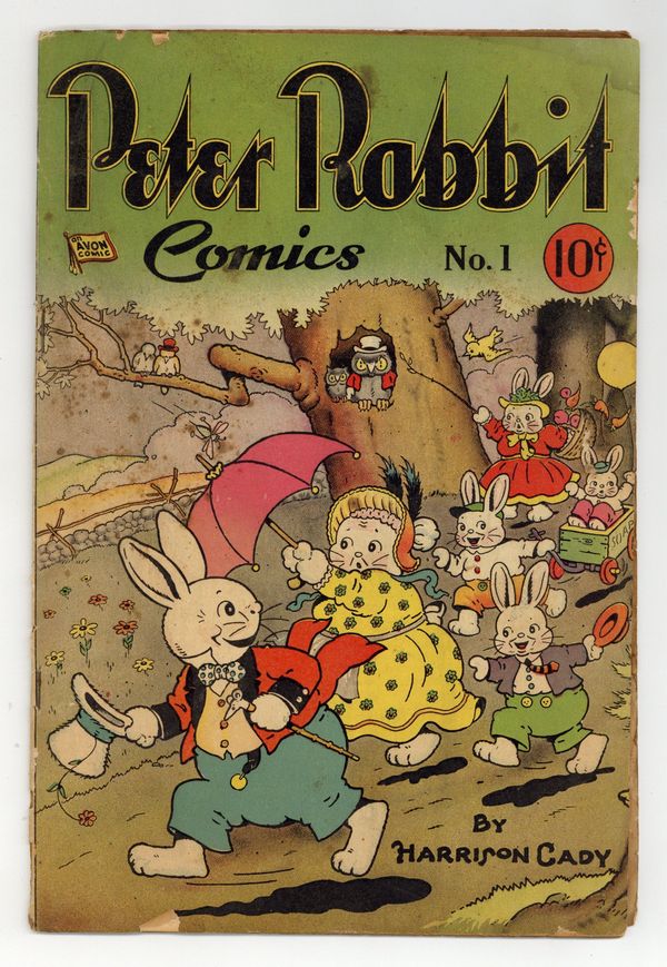 Stories by Harrison Cady and Dow Walling. Art by Harrison Cady and Dow Walling. Cover by Harrison Cady. Reprints of the vintage childrens comic strip featuring a rabbit named Peter and his family and friends. When Peter sees Mr. Bear looking for a winter cave, he decides to play a trick on him; Buglet creates a school that has no doors, so no one has to go inside. Also featuring a profile of Peter Rabbit cartoonist Harrison Cady. Peter Rabbit; Skeets. 36 pages, Full Color. Cover price $0.10. Grade: GD+ 2.5 explanation of grade Condition: Used (collectible)