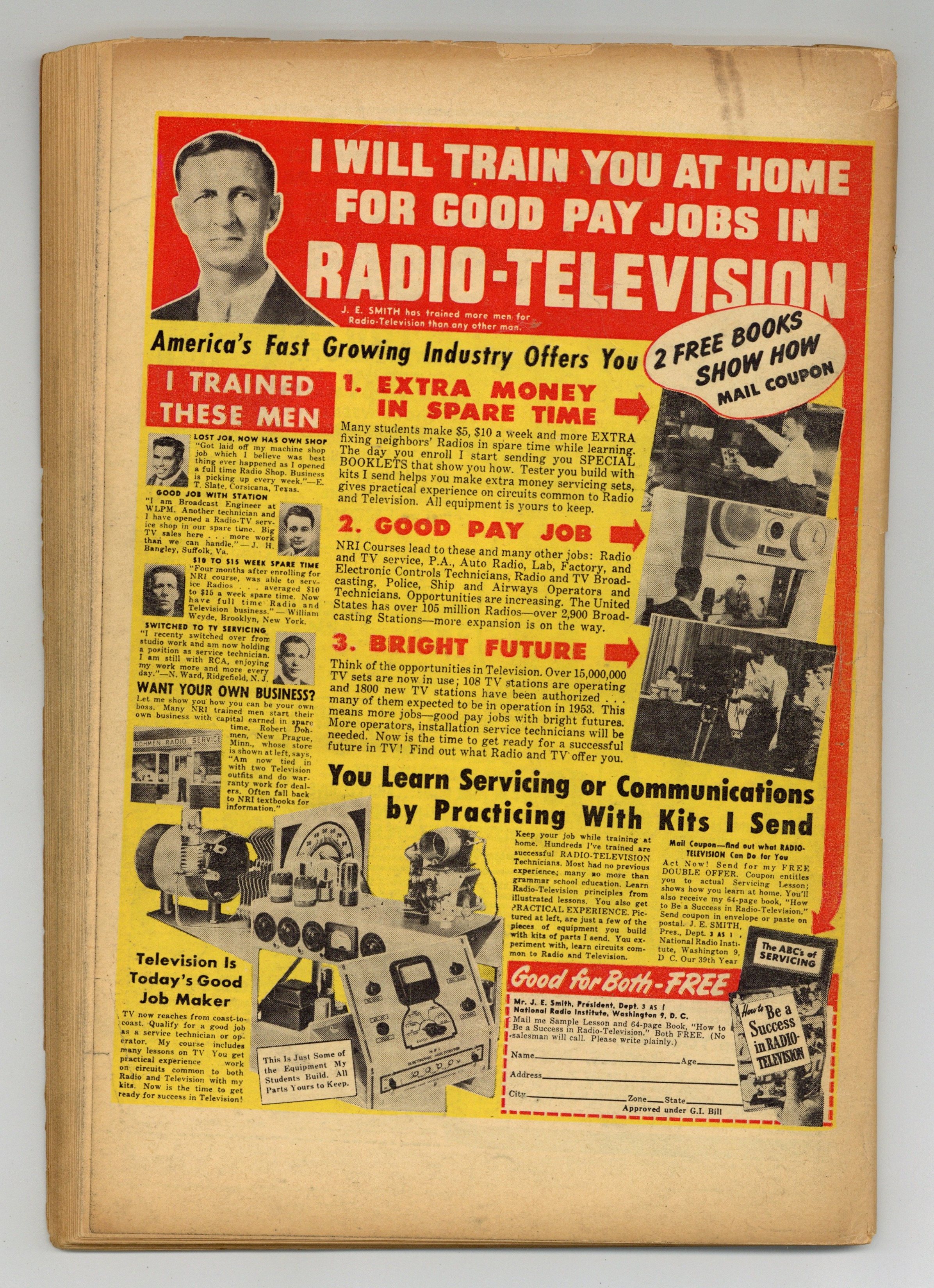 Cover by Albert Tyler. Stories and art by A. C. Hollingsworth, Gus Ricca, Pete Morisi, Rafael Astarita, Lou Cameron, Ben Brown, David Gantz, Albert Tyler and Bill Molno. Classic pre-Code horror from St. John. 100-page special. An amusement park is cursed by the vengeful ghost of its murdered owner. The stage magician named Satan the Great gets a chance to make a deal with the real thing. A modern-day doctor from a Native reservation finds himself 80 years in the past. In another time-travel story, modern-day hunters are transported 200 years in the future, when humankind is enslaved by monsters, and firearms are a lost technology. Bondage cover by Albert Tyler. The Devils Chair; The Amusement Park Terror; A Plot of Land; The Vision on Death; The Deep Pit; The Forgotten People; Satan the Great; Carnival of Death; Back from the Dead; Wrath of Ra-Amun; Monsters of Another Time; The Ghost Light; Peril Haunts the Depths; Life Without End; Convicted by a Ghost; The Phantom Airman; Payment in Full. 100 pages, Full Color. Cover price $0.25. Grade: FR 1.0 explanation of grade Condition: Used (collectible)