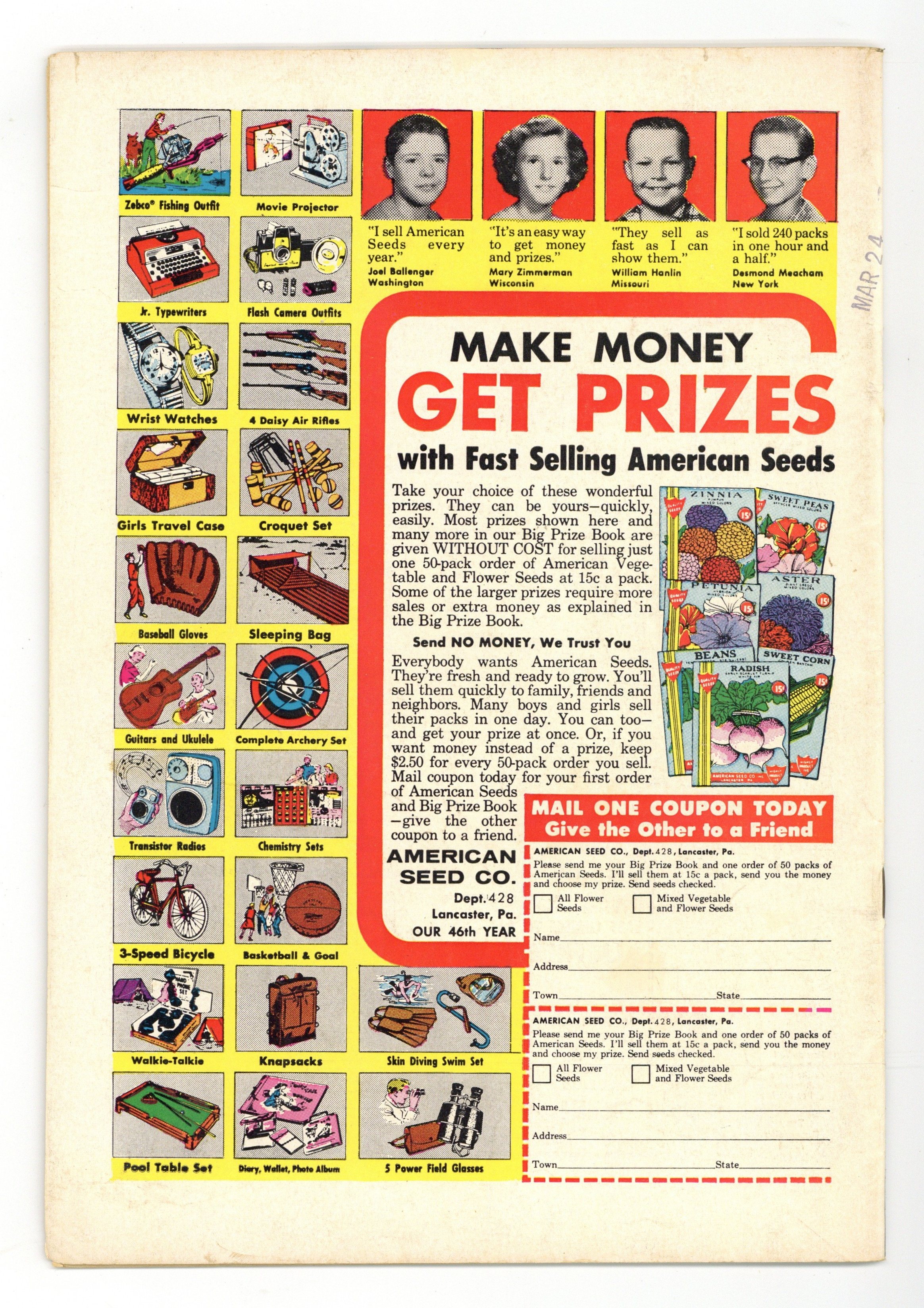 First "new look" Batman. Written by John Broome. Art by Carmine Infantino and Joe Giella. Cover by Carmine Infantino and Joe Giella. First "new look" Batman in "The Mystery of the Menacing Mask!"; The trail of a jewel thief leads to subterranean enclave of criminals. Fantastic Fingerprints article. Batman's Hot-Line article. Written by Gardner Fox. Art by Carmine Infantino. Ten Miles to Nowhere!; Ralph and Sue stumble on to a mystery involving diamond smuggling at a motel; Flash and Kid Flash cameos. 36 pages, full color. $0.12. Cover price $0.12. Grade: VG 4.0 explanation of grade Condition: Used (collectible)