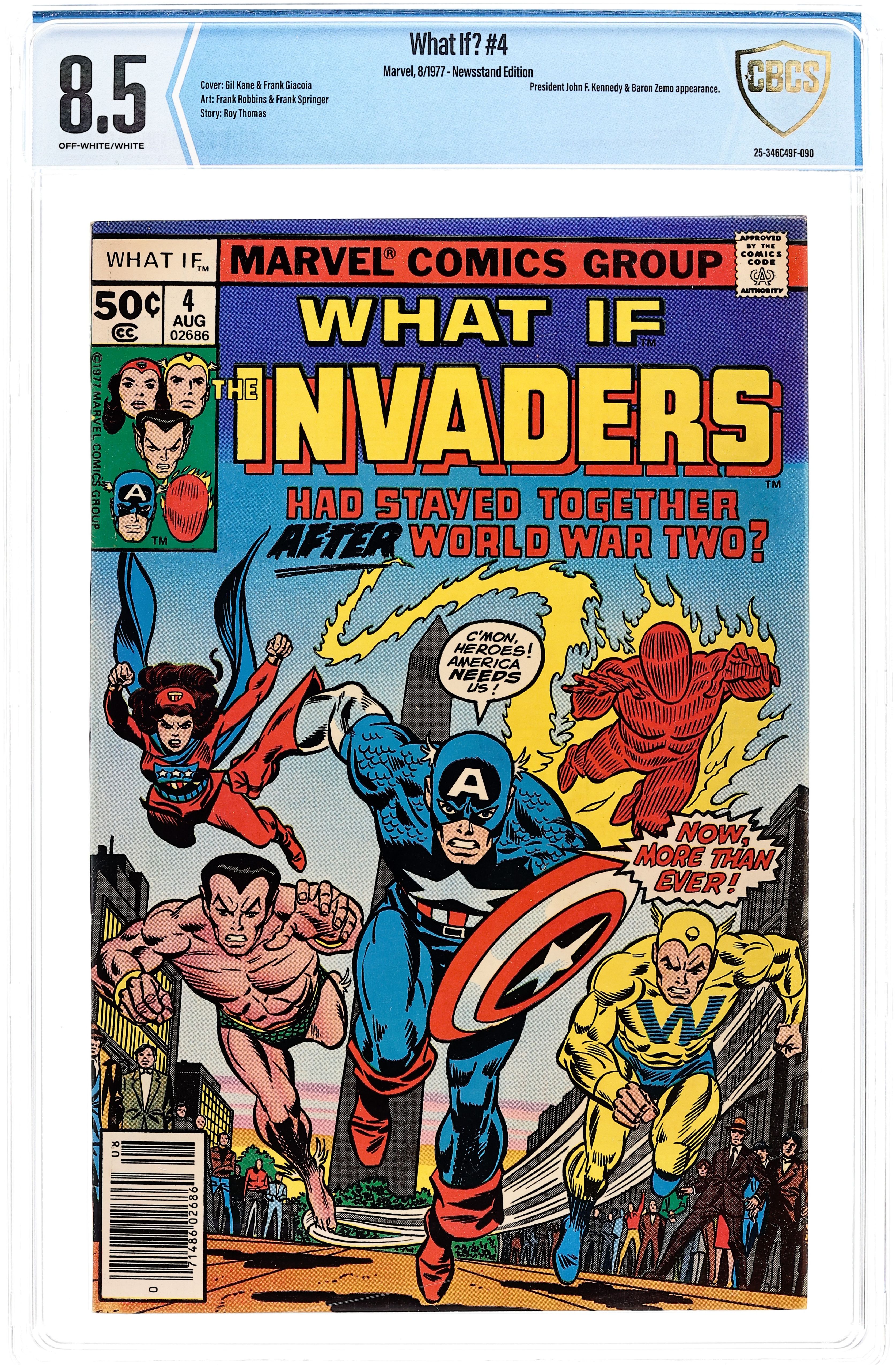Starts Feb 2 Cover pencils by Gil Kane, inks by Frank Giacoia. What if the Invaders Had Stayed Together After World War Two? starring the Invaders, script by Roy Thomas, pencils by Frank Robbins (breakdowns) and Frank Springer (finished art), inks by Frank Springer; This story is in continuity and explains the post-1945 Captain America; It features the death of the Spirit of '76 (Cap II) and the introduction of the Patriot as Capt III. Hostess Twinkie ad with Spider-Man, pencils by Ross Andru, inks by Mike Esposito. Article by Roy Thomas called Why Not? 52 pgs. Cover price $0.50. Grade: CBCS 8.5 explanation of grade Condition: Used (collectible)