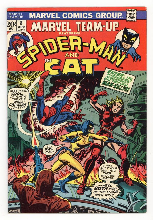 "The Man-Killer Moves at Midnight!" Guest-starring Spider-Man and the Cat. Script by Gerry Conway. Art by Jim Mooney. Cover by Jim Mooney. The Cat (aka Greer Nelson) comes to New York City to recruit the web-slinger -- for a fight against Man-Killer! Apparently, the Man-Killer murdered a politician in Chicago, and now she's in the Big Apple to do likewise. But Spider-Man and the future Tigra have a plan to stick it to the Man-Killer! First appearance of Man-Killer. (Notes: The Cat appears in this story between issues #3 and #4 of the Cat (1972) title. The Cat becomes Tigra in Giant-Size Creatures (1974) #1.) 36 pages. Cover price $0.20. Grade: FN 6.0 explanation of grade Condition: Used (collectible)