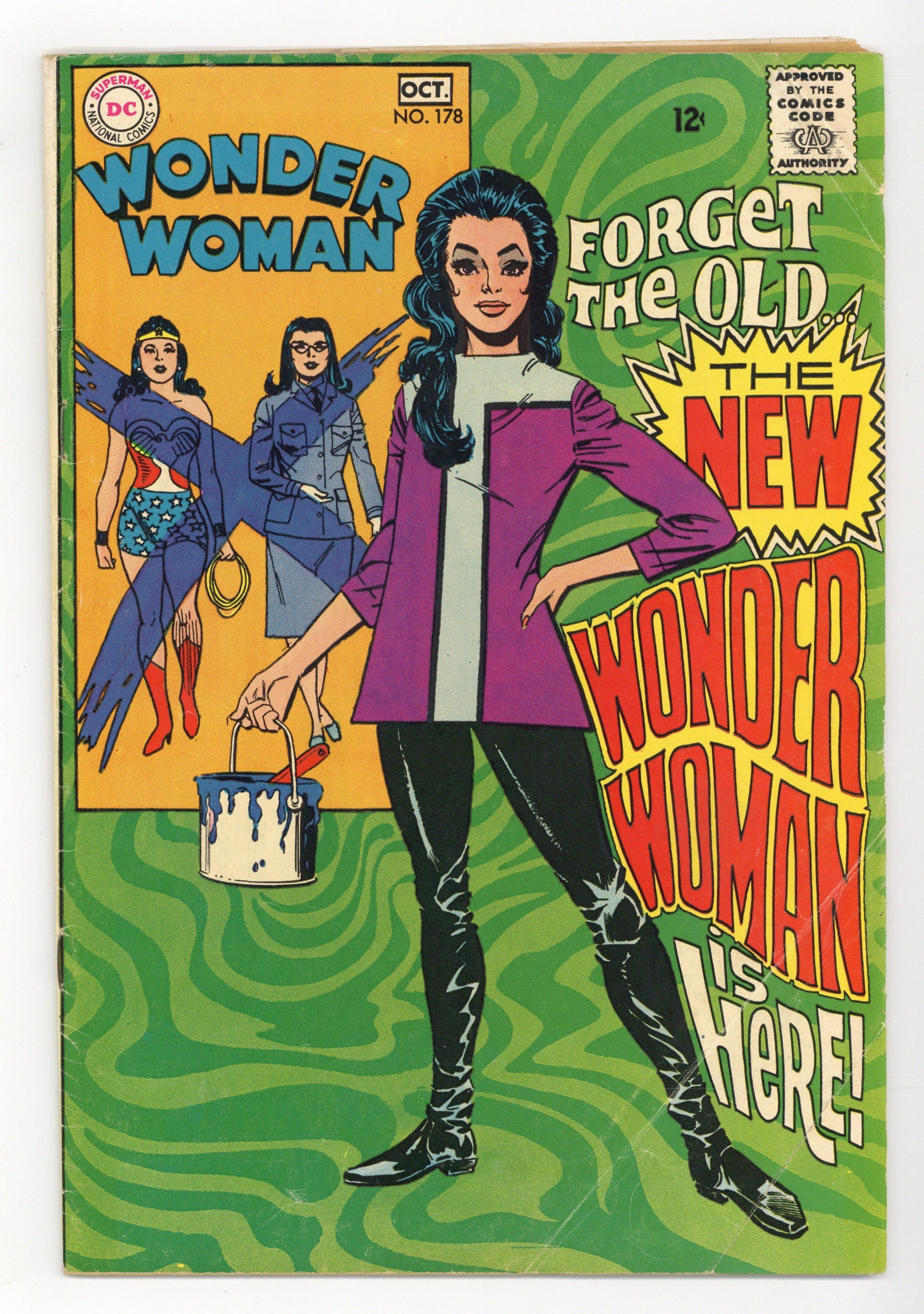 Starts Jan 26 "Wonder Woman's Rival." When Steve Trevor is suspected of murder, Wonder Woman must investigate the modern social scene in the most up-to-date fashions as Diana Prince. Though she successfully clears Steve, once she sees Steve's reaction to the new Diana Prince, Wonder Woman decides that she needs to update her heroic identity, too. Written by Denny O'Neil, with art by Mike Sekowsky and Dick Giordano. (Note: Start of a new look for Wonder Woman.) Characters: Wonder Woman [Diana Prince]; Steve Trevor; Roger Seely; Alex Block; Buck; Miss Carvan. Cover by Mike Sekowsky and Dick Giordano. 36 pages, Full Color. Cover price $0.12. Grade: GD/VG 3.0 explanation of grade Condition: Used (collectible)