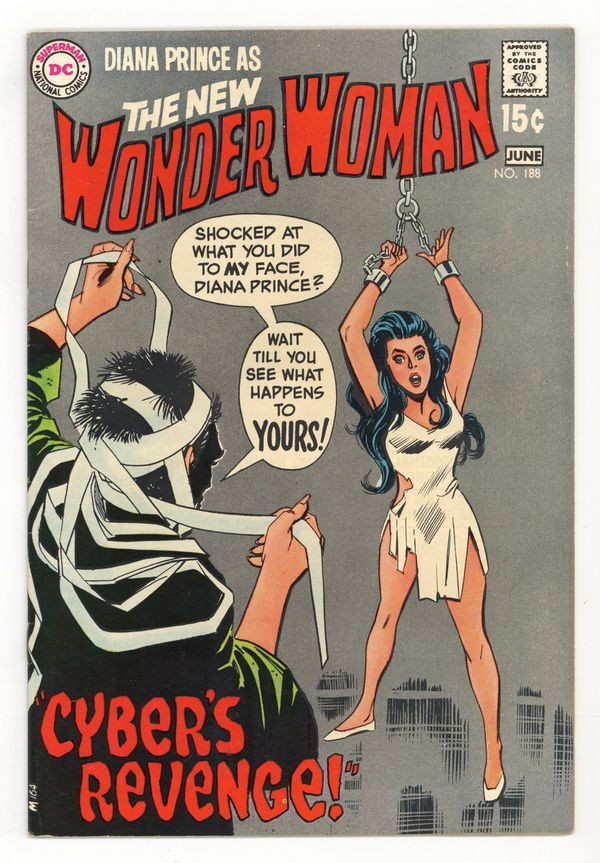 Starts Feb 2 "Cyber's Revenge!" Continued from last issue; continued next issue. Written and pencilled by Mike Sekowsky, with inks by Dick Giordano. Characters: Wonder Woman; Dr. Cyber (villain); Lu Shan; Patrick McGuire. Plus: Diana knocks a common thief who is dumb enough to try to steal her purse and jiu-jitsu's his partner, who's posing as a woman, in the 2-page story "Crime Does Not Pay!" Written and pencilled by Mike Sekowsky. Cover by Mike Sekowsky and Dick Giordano. 36 pages, Full Color. Cover price $0.15. Grade: VG+ 4.5 explanation of grade Condition: Used (collectible)