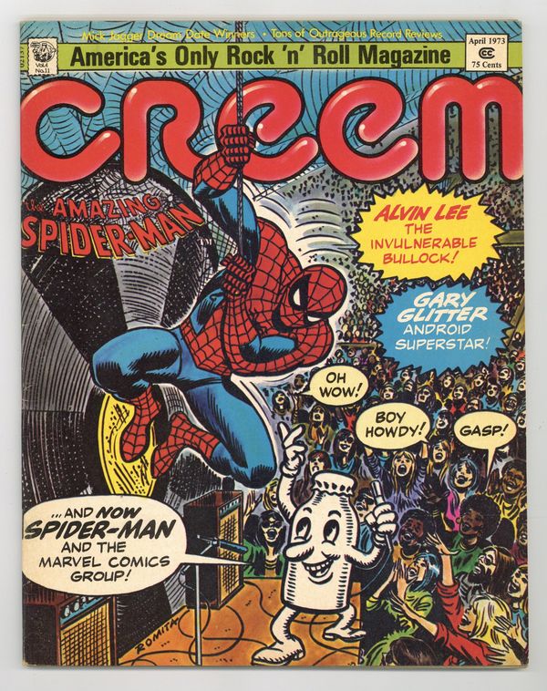Amazing Spider-Man Cover by John Romita. Marvel articles with photos of Stan Lee, John Romita, and Roy Thomas, centerfold spread featuring popular Heroes & Villains of the Marvel Universe, plus an ad to send off for the Amazing Spider-Man: A Rockomic! Album. Cover price $0.75. Grade: VG+ 4.5 explanation of grade Condition: Used (collectible)