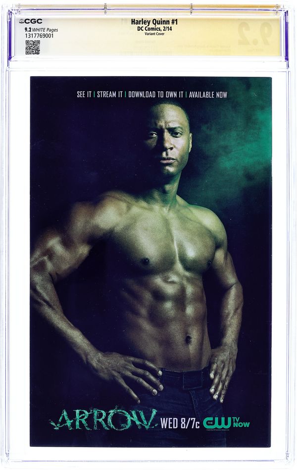 "Hot In The City" Written by Amanda Conner, Jimmy Palmiotti. Art by Chad Hardin. Harley is set to begin her new life, but she needs a job first! Enter the Coney Island Roller Derby! It's game time as Harley sets out to destroy her competition, literally! Limited 1 for 25 Variant Cover by Adam Hughes. Cover price $2.99. Grade: CGC 9.2 explanation of grade Condition: Used (collectible)