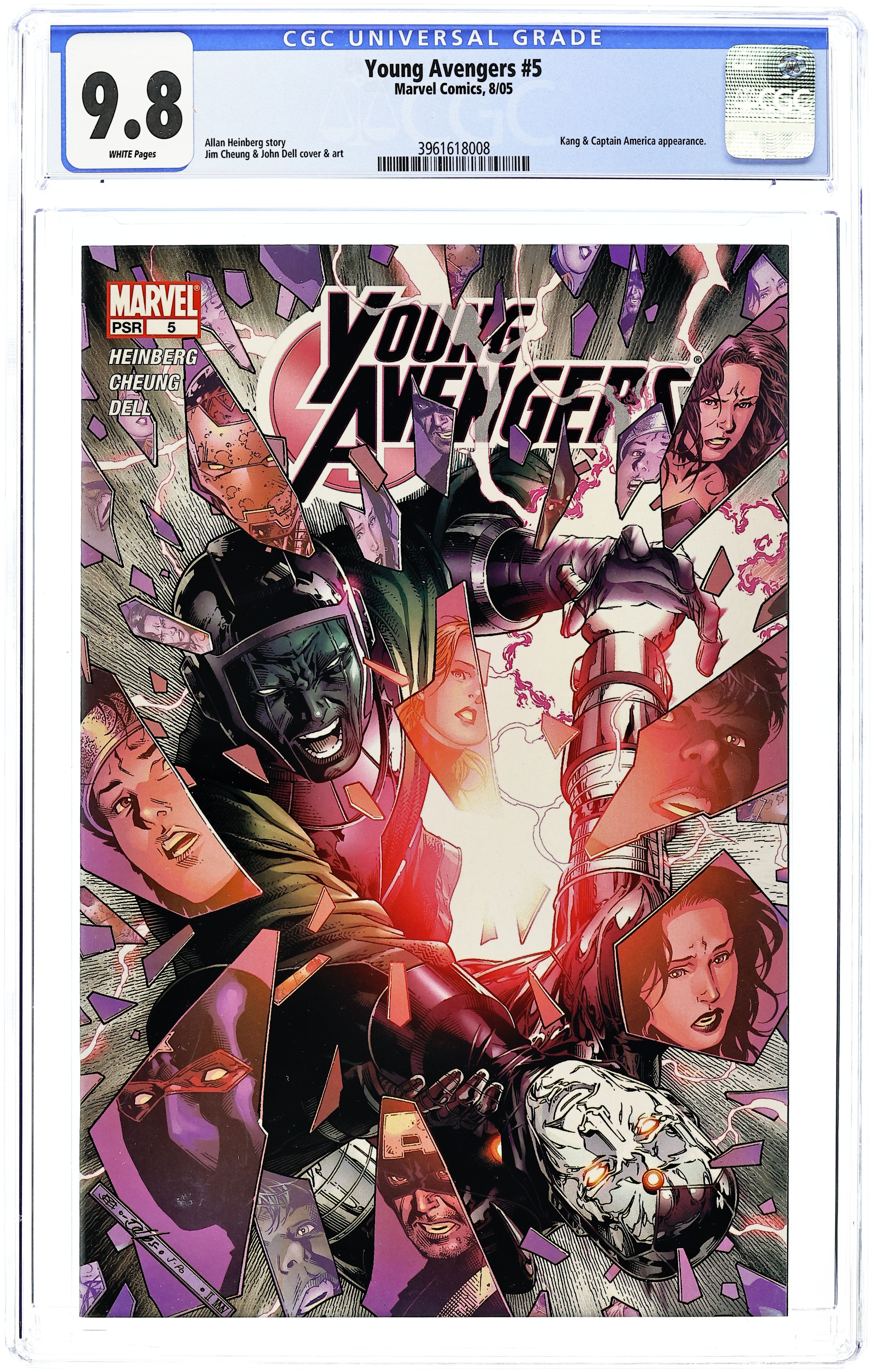 Written by ALLAN HEINBERG Pencils and Cover by JIM CHEUNG "SIDEKICKS" Who ARE the Young Avengers? Discover their deepest secrets in this issue! In the penultimate chapter of "Sidekicks," the Young Avengers are finally forced to reveal the true nature of their powers as their battle with Kang the Conqueror becomes a fight to the death -- and that's not hyperbole! But will the team survive its first fatality? Part 5 (of 6). 32 PGS./T+ Suggested for Teens and Up ...$2.99 Cover price $2.99. Grade: CGC 9.8 explanation of grade Condition: Used (collectible)