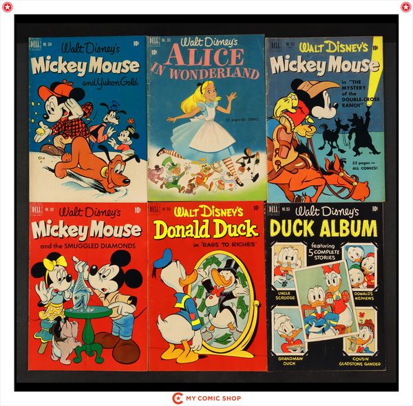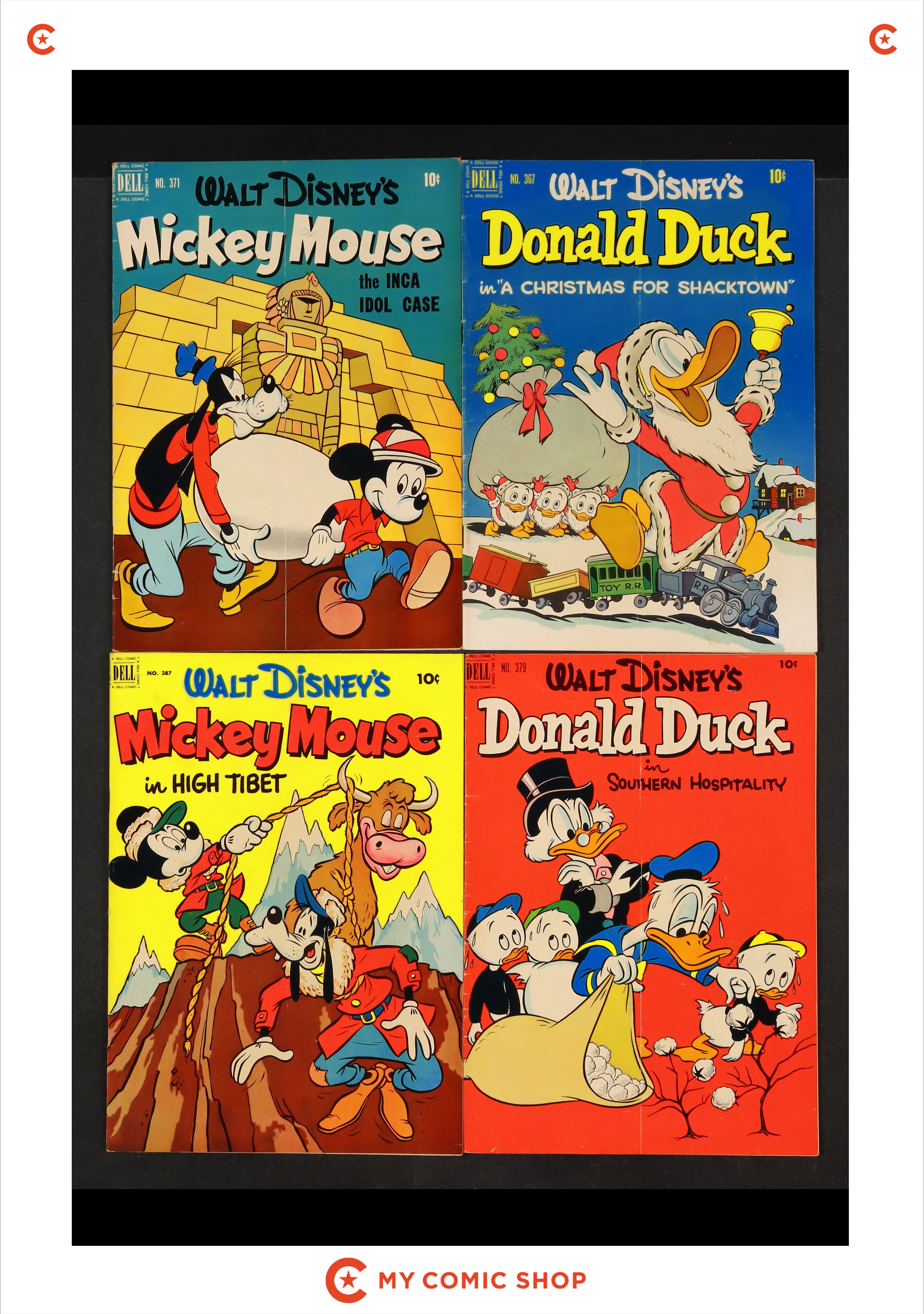 Issues 313, 331, 334, 353, 356, 362, 367, 371, 379, and 387 of Four Color (1942-1962 Dell 2nd Series). Most will grade in the VG range.