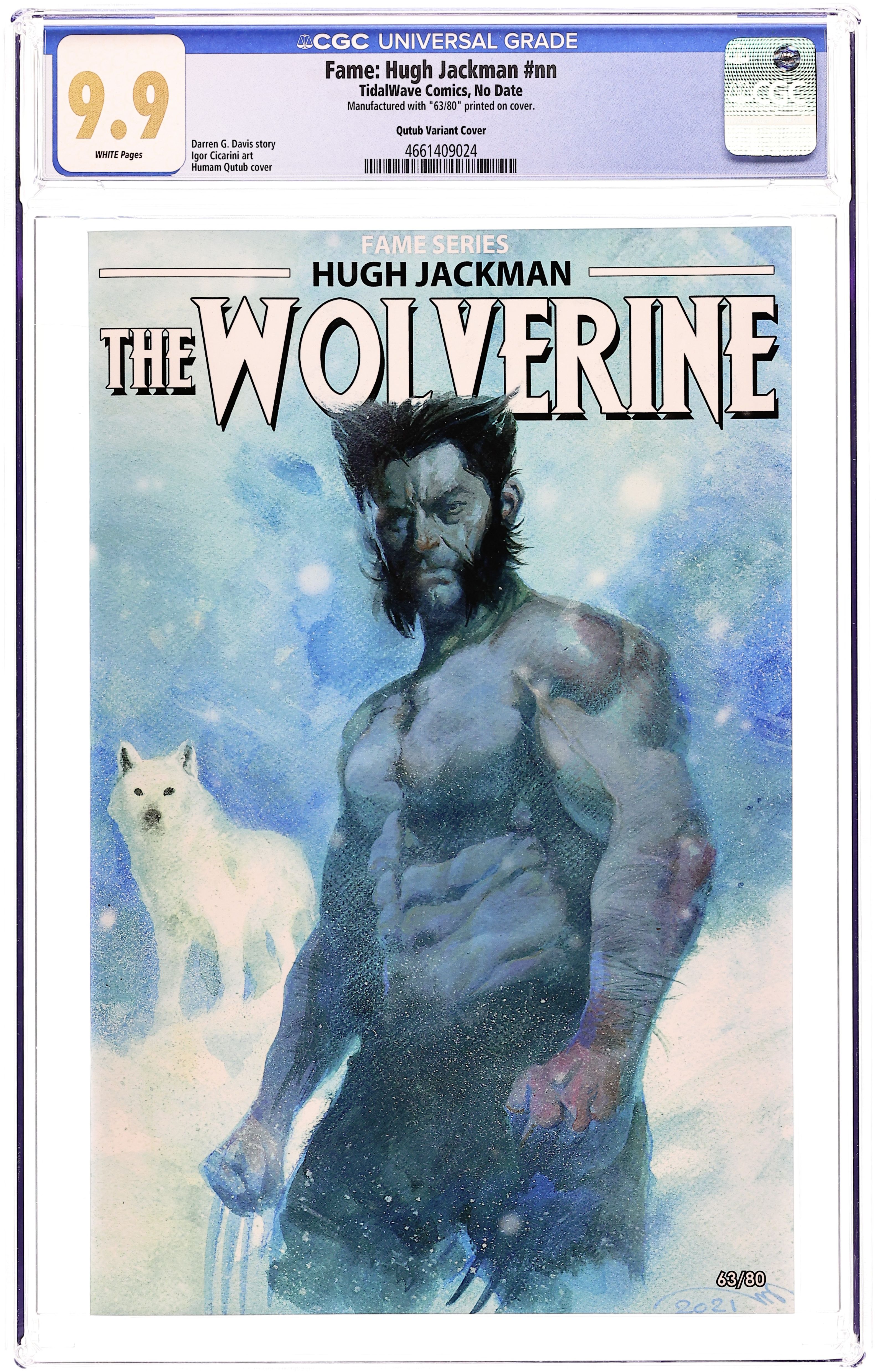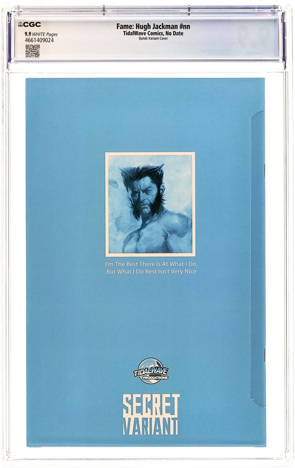 "Secret Variant" Cover by Humam Qutub - limited to 80 copies. Story by Darren G. Davis. Art by Igor Cicarini. A comic book biography following the life and career of Australian actor, Hugh Jackman. Grade: CGC 9.9 explanation of grade Condition: Used (collectible) unless item is a new release