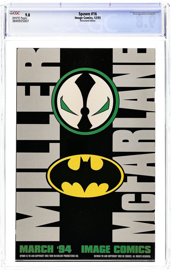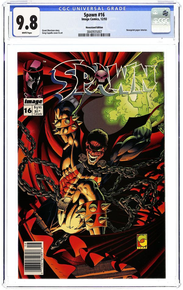 Newsstand Edition. "Reflections!" Part 1 of 3. 1st appearance of the Anti-Spawn (later to called the Redeemer). Story by Grant Morrison. Art by Greg Capullo, Dan Panosian, and Art Thibert. When the balance of power on Earth has been tipped too far in the other direction, agents of Heaven kidnap Jason Wynn and transform him into an instrument of the Lord - the Anti-Spawn! Includes 2 Spawn pin-ups by Brad Gorby and Don Simpson. Cover price $1.95. Grade: CGC 9.8 explanation of grade Condition: Used (collectible)
