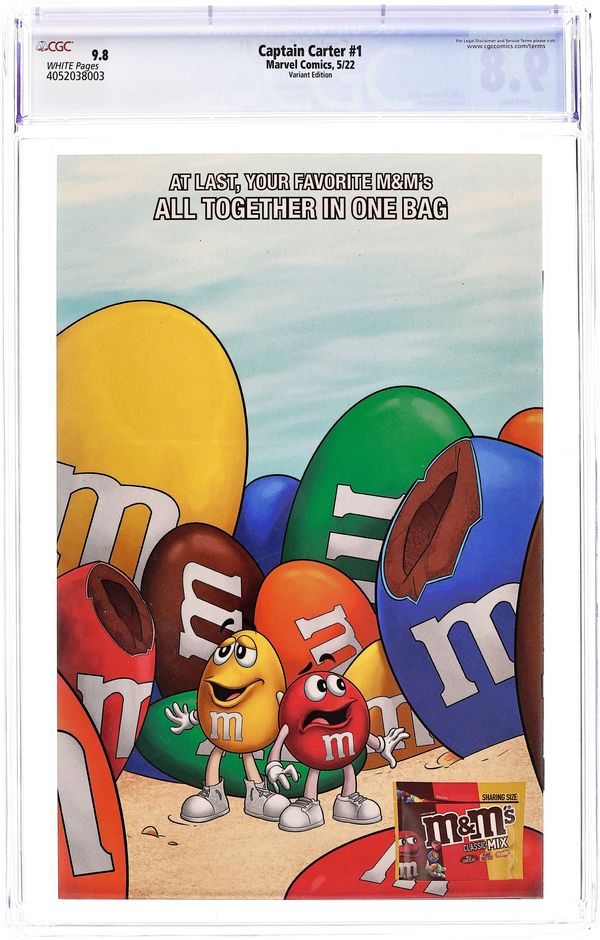 Limited 1 for 25 Retailer Incentive Variant Cover. Written by Jamie McKelvie. Art by Marika Cresta. WOMAN OUT OF TIME? A reality where Agent Peggy Carter took the Super-Soldier Serum is turned upside down when the World War II hero is pulled from the ice where she was lost in action decades before. Peggy struggles to find her footing in a modern world that's gotten a lot more complicated - cities are louder, technology is smarter and enemies wear friendly faces. Everyone with an agenda wants Captain Carter on their side, but what does Peggy want? And will she have time to figure it out when mysterious forces are already gunning for her? Prolific comics creator and designer Jamie McKelvie teams with rising star Marika Cresta to tell an unforgettable Captain Carter story for a modern age. 28 pages, full color. Rated T+ Cover price $3.99. Grade: CGC 9.8 explanation of grade Condition: Used (collectible)