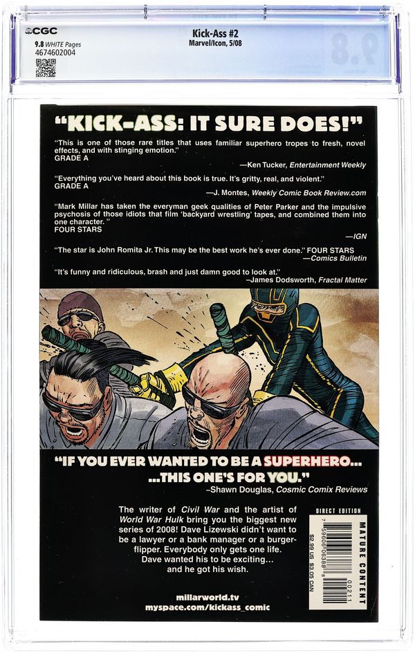 Published May 2008 by Marvel/Icon.Kick-Ass (2008 Marvel/Icon) 2A CGC 9.8 Romita Jr. 1st Printing
