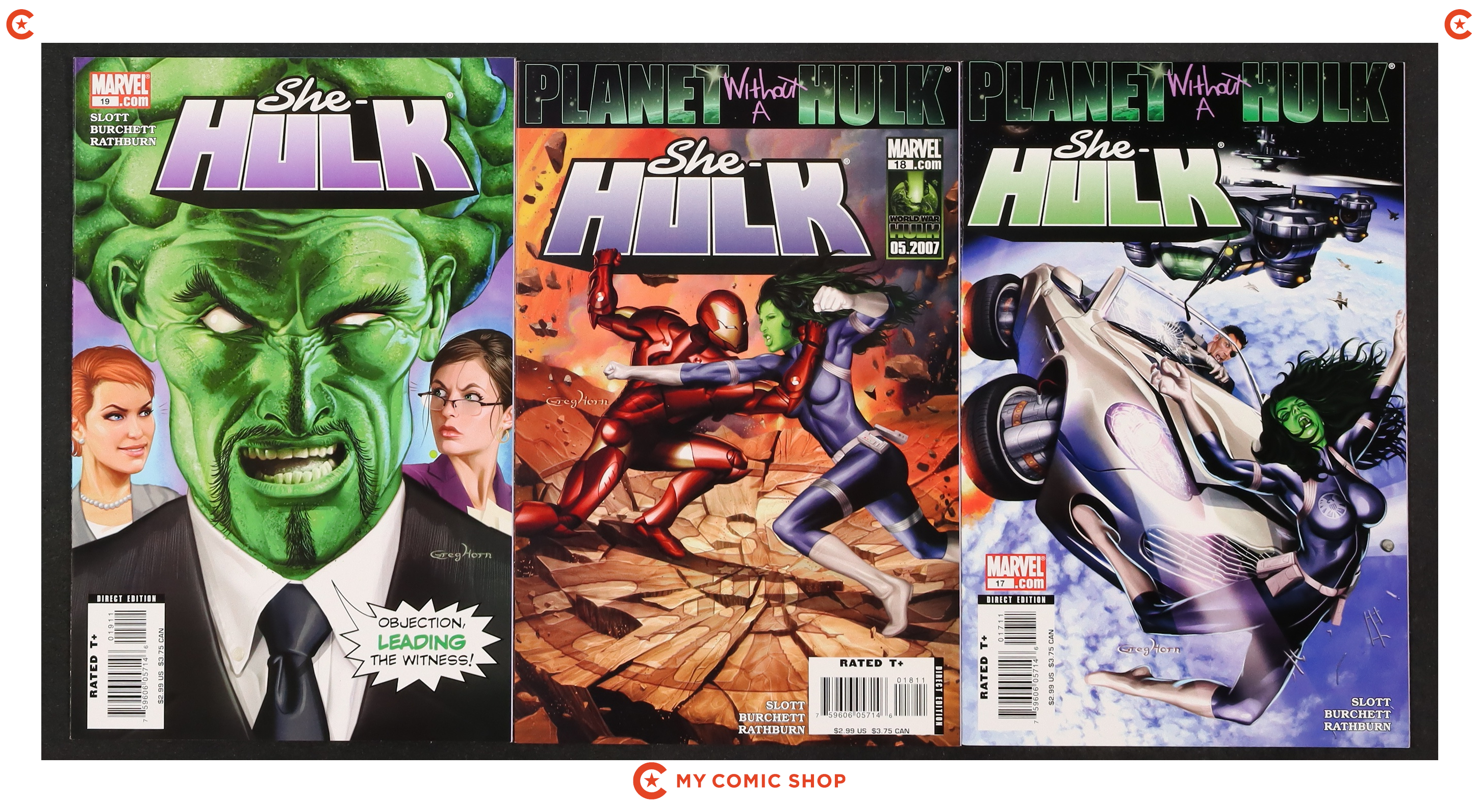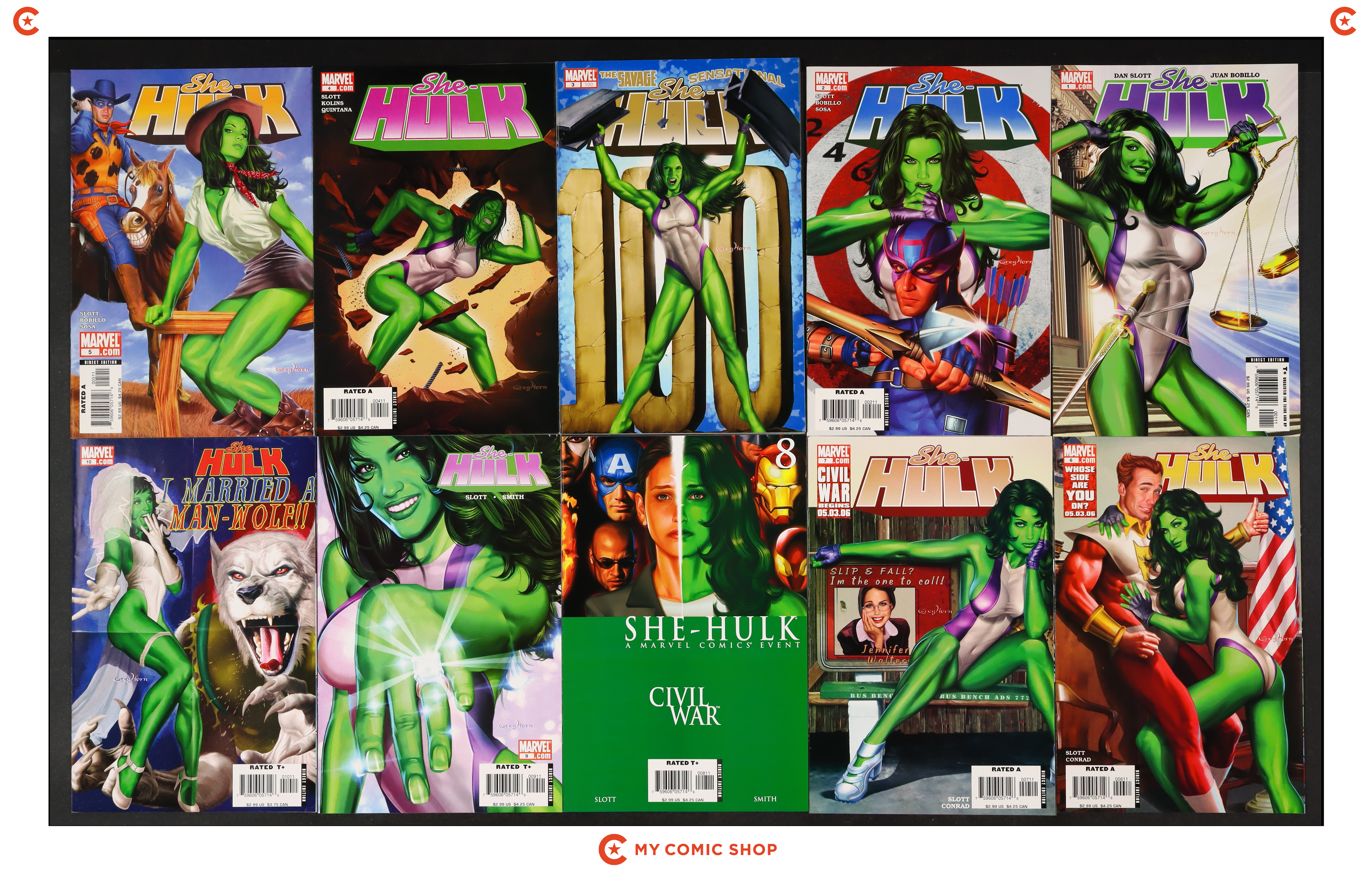 Issues 1-7, 8A, and 9-19 of She-Hulk (2005 2nd Series). Most will grade in the NM to VF range.