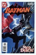 Written by Judd Winick. Art by Doug Mahnke & Tom Nguyen Cover by Matt Wagner. Part 1 of the 4-part "Under the Hood," featuring the new BATMAN team of writer Judd Winick (OUTSIDERS, GREEN ARROW), artists Doug Mahnke (JLA, JUSTICE LEAGUE ELITE) & Tom Nguyen (JLA) and cover artist Matt Wagner (BATMAN/SUPERMAN/WONDER WOMAN: TRINITY)! In the wake of "War Games," Batman must deal with a city in turmoil. While battling new criminal chieftains raiding his city, Batman is confronted with a face from the past? or rather, a hidden face from the past. Welcome the return of the Red Hood! 40 Pages, Full Color. Cover price $2.25. Grade: VG/FN 5.0 explanation of grade Condition: Used (collectible)