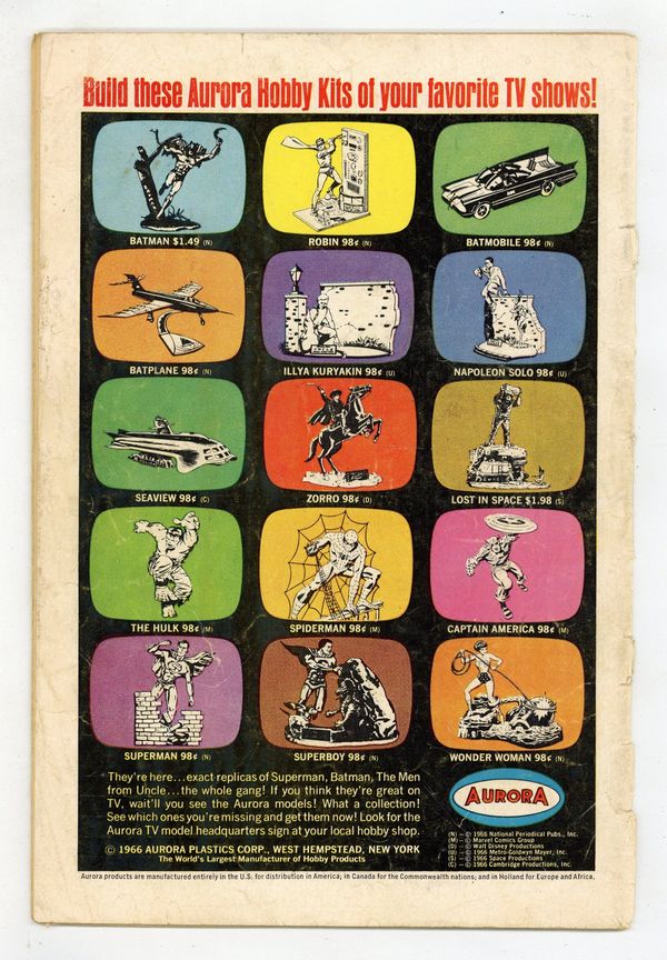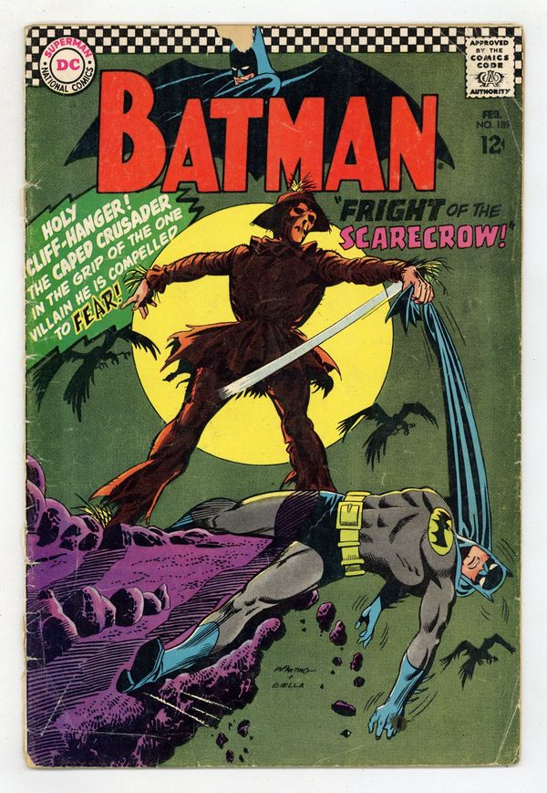 Cover pencils by Carmine Infantino, inks by Joe Giella. 1st Silver Age appearance of Scarecrow in book-length story, "Fright of the Scarecrow!", script by Gardner Fox, pencils by Sheldon Moldoff (as Bob Kane), inks by Joe Giella; While entertaining some children in the park, Dick happens to notice the Scarecrow retrieving buried loot from a past robbery; He calls in Batman and together they battle their old foe until they are blinded by Scarecrow's fear gas. Little Pete humor half-page by Henry Boltinoff. Letter from comic book writer Mark Evanier. Peace on Earth public service announcement. Eyes Front! humor half-page by Henry Boltinoff. 36 Pages, Full Color. Cover price $0.12. Grade: GD 2.0 explanation of grade Condition: Used (collectible)